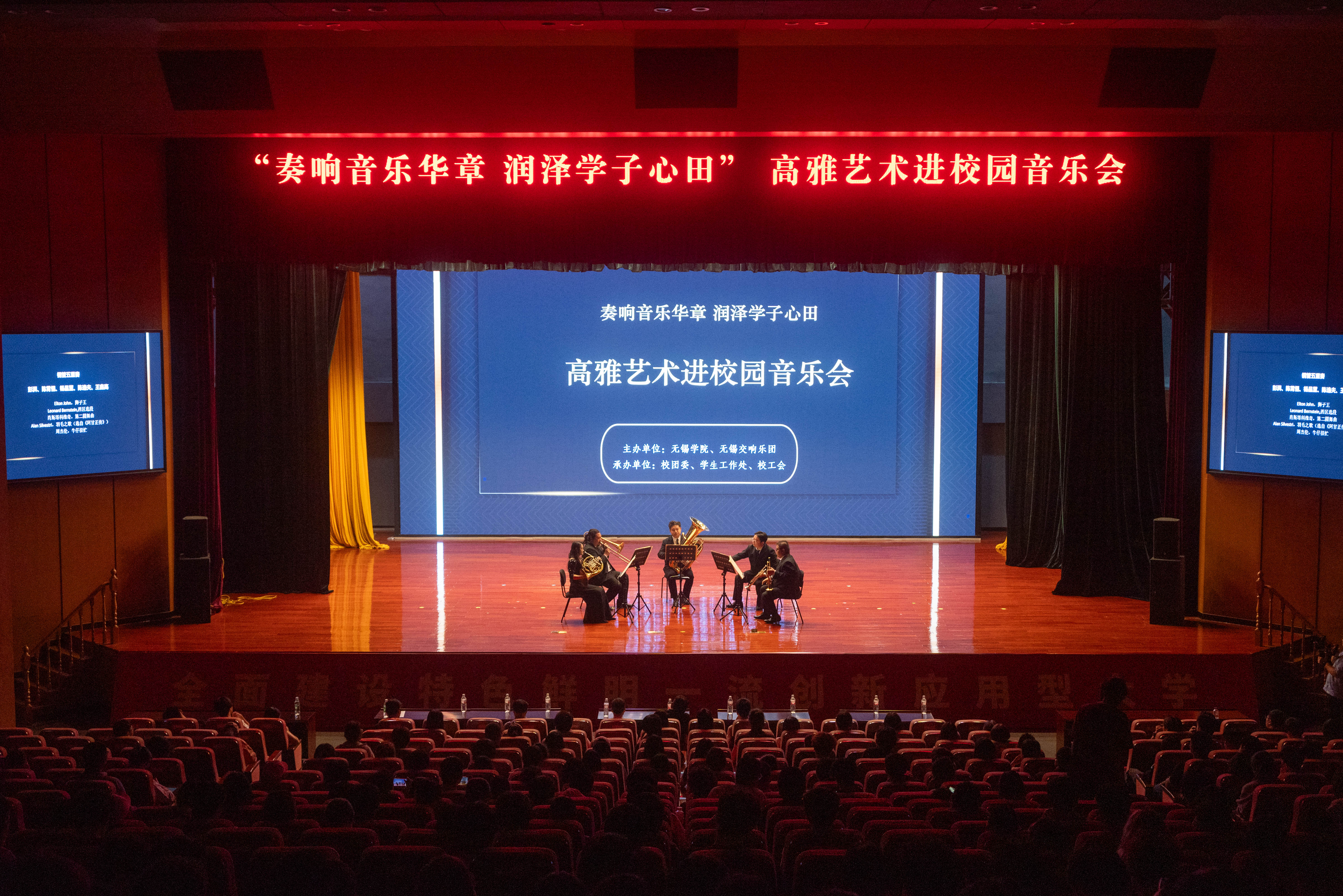 6月11日,由无锡学院、无锡交响乐团主办,校团委、学生工作处、校工会承办的“奏响音乐华章 润泽学子心田”高雅艺术进校园音乐会在学校滨江大礼堂成功举办,我校教职工及学生500余人参加活动。