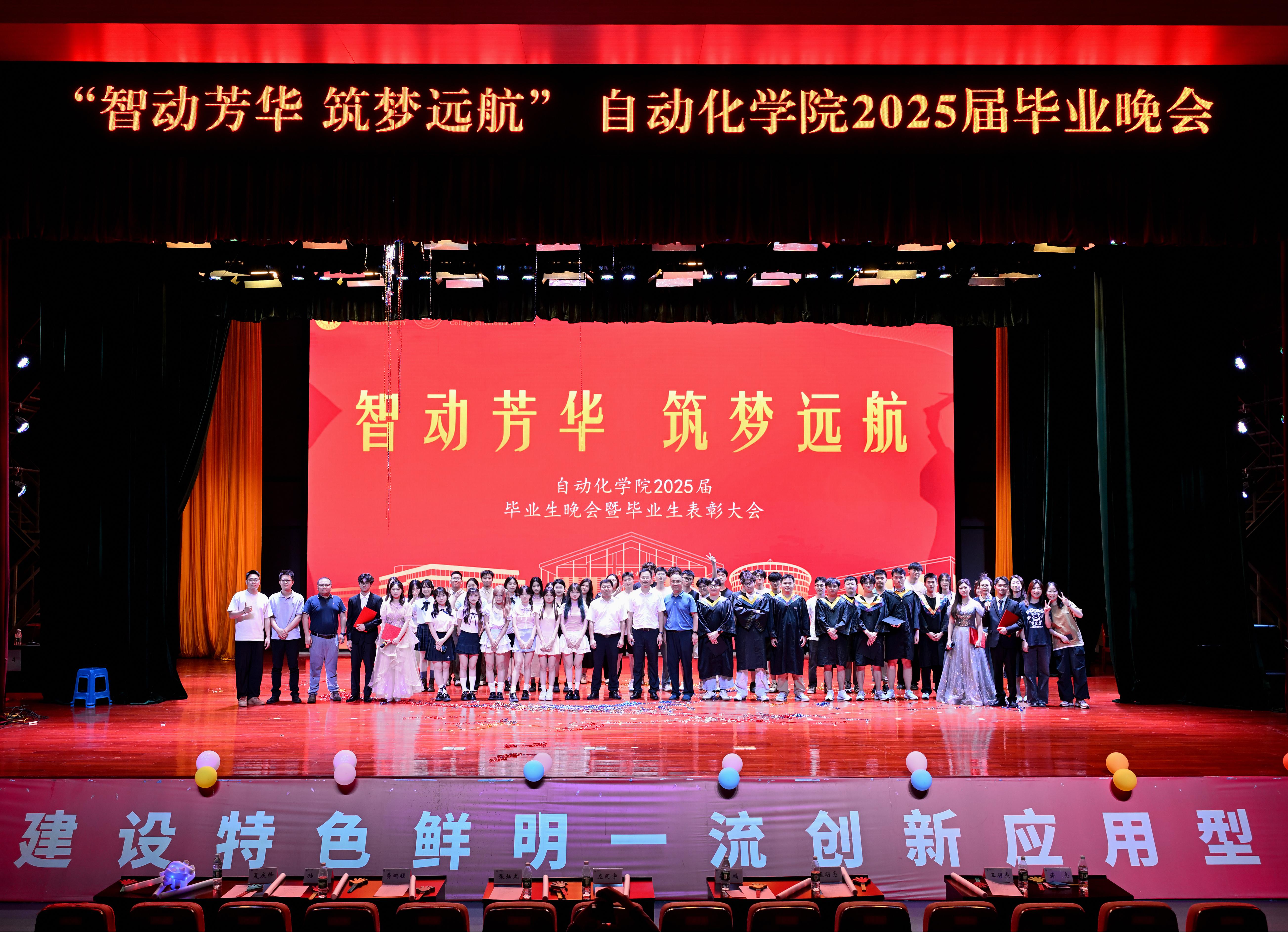 本次毕业生晚会暨表彰大会以“智动芳华,筑梦远航”为主题。活动在震撼的开场视频中拉开帷幕,一张张照片串联起学子们从入学到毕业的青春足迹,毕业班辅导员、专业老师们送上了暖心的寄语和祝福,引得现场掌声与欢呼不断。