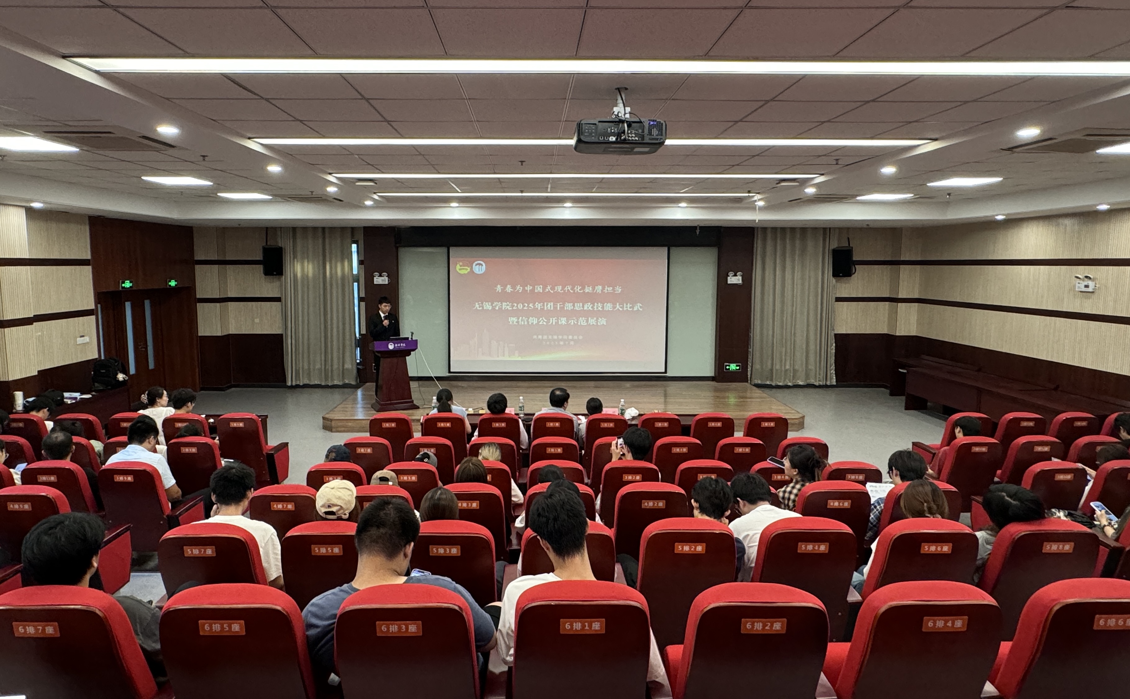为深入学习贯彻习近平新时代中国特色社会主义思想,构建“大思政”育人格局,进一步聚焦思想引领主责主业,打造精品思政课程,7月2日下午,我校在行政楼227报告厅举办2025年团干部思政技能大比武决赛暨信仰公开课示范展演活动。党委宣传部常务副部长李步浩、党委学生工作部副部长路遥、马克思主义学院副院长沈妉、团委兼职副书记卢艳出席本次活动并担任评委,我校“青马工程”培训班学员到场观摩学习。