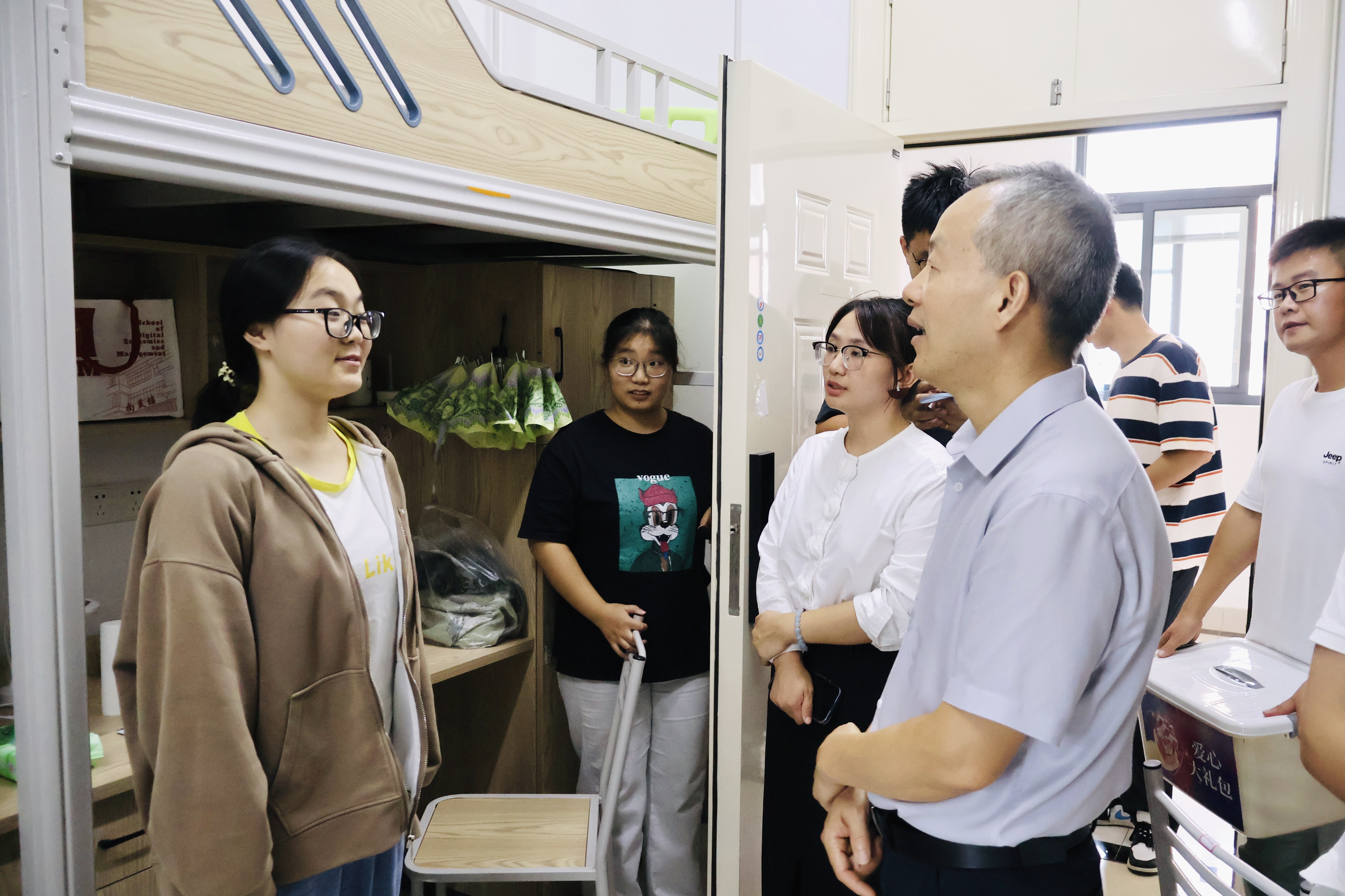 为进一步关心新生入学状态,切实了解新生的生活状况与需求,传递学校的关怀与温暖,9月9日下午,数字经济与管理学院院长刘军、党总支副书记李诗雅、应急管理学院副院长邹衍华、辅导员一行来到2025级新生宿舍进行走访慰问,为刚踏入校园的学子们送去关怀与嘱托。