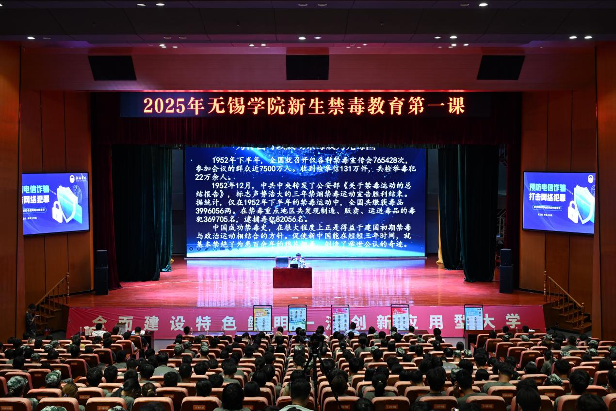 为切实提高2025级新生识毒、防毒、拒毒意识,筑牢校园禁毒防线,9月17日晚,校团委联合学生工作处、保卫处在滨江大礼堂举办“青春无毒,未来可期”新生禁毒宣传专题讲座,现场600余名新生及辅导员参加了本次活动。