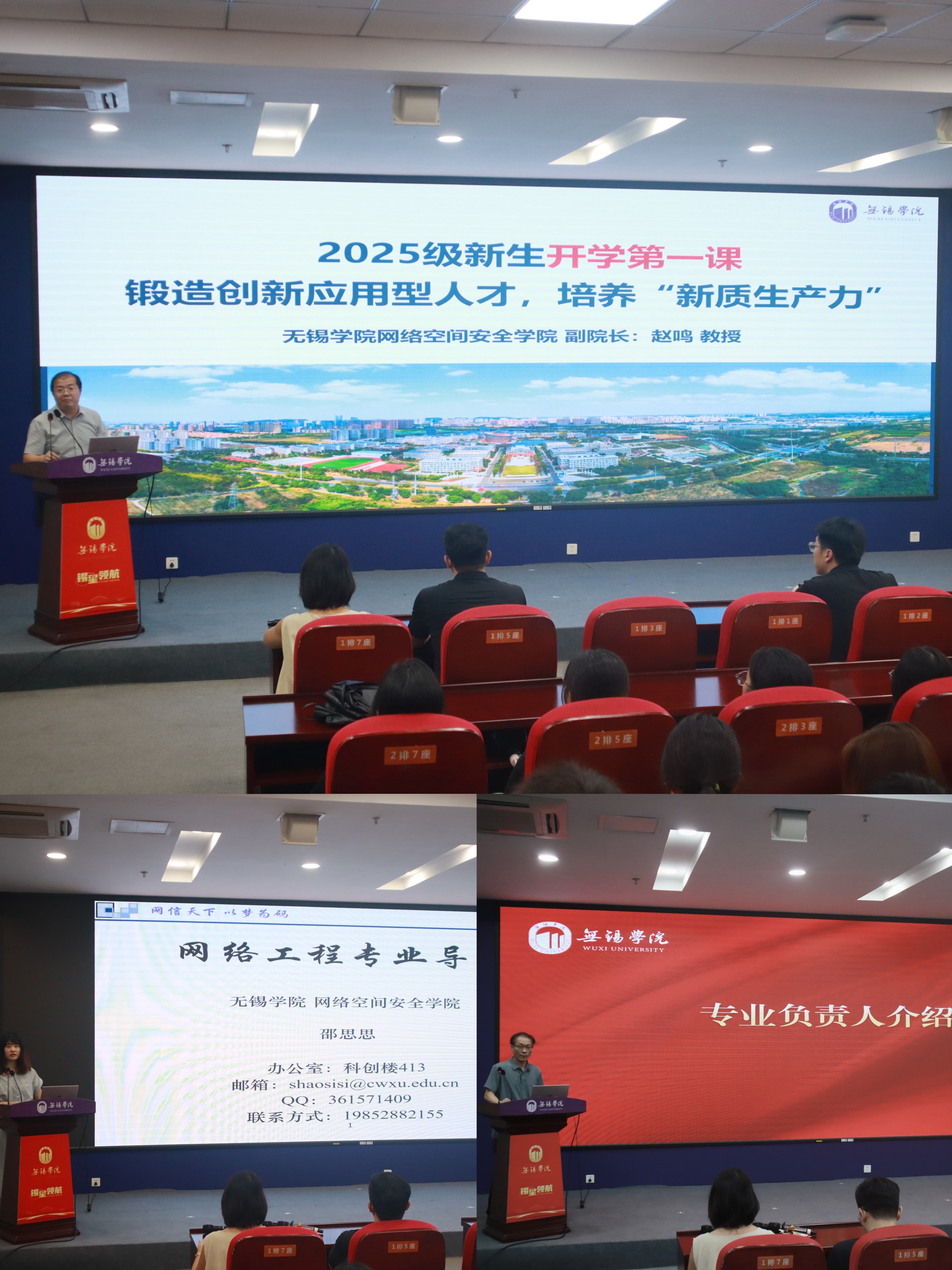 在开学第一课环节,赵鸣围绕学院发展历程、专业建设、师资力量、学科特色等方面系统介绍了学院情况,并深入分析了当前网络空间安全领域的战略意义及人才需求态势。他希望全体新生能尽快适应身份的转变,树立远大理想,珍惜学习时光,夯实专业基础,勇于投身实践,在网络空间安全领域深耕细作,争做维护国家网络安全的中坚力量。