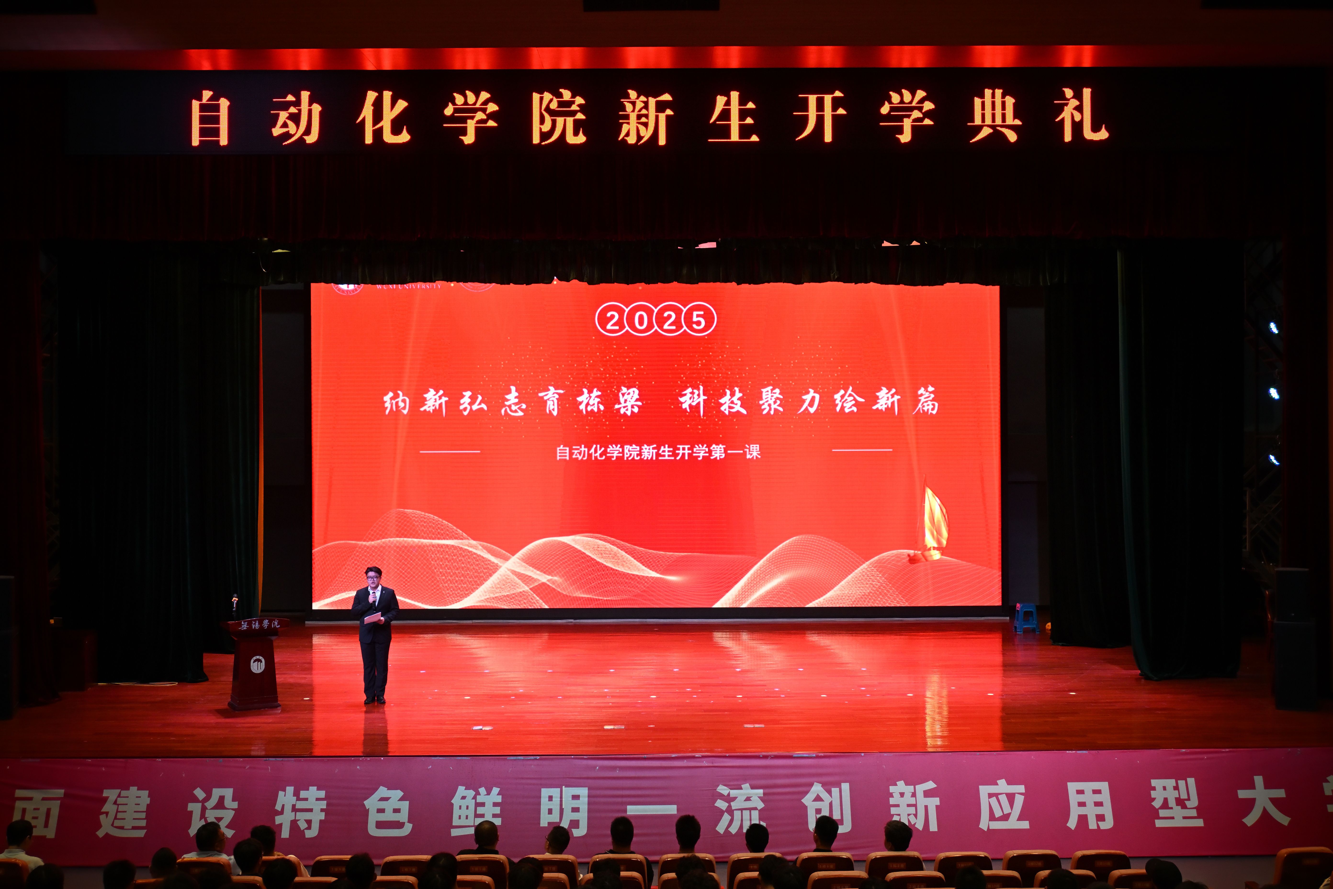 9月25日晚,自动化学院在大礼堂二楼举办2025级新生开学第一课暨开学典礼。学校信息化建设与管理中心副主任夏庆锋、自动化学院党总支副书记王明杰、副院长蒋亮、副院长花国祥出席活动。自动化学院各系主任、全体辅导员、新生班主任和2025级全体新生参加典礼。