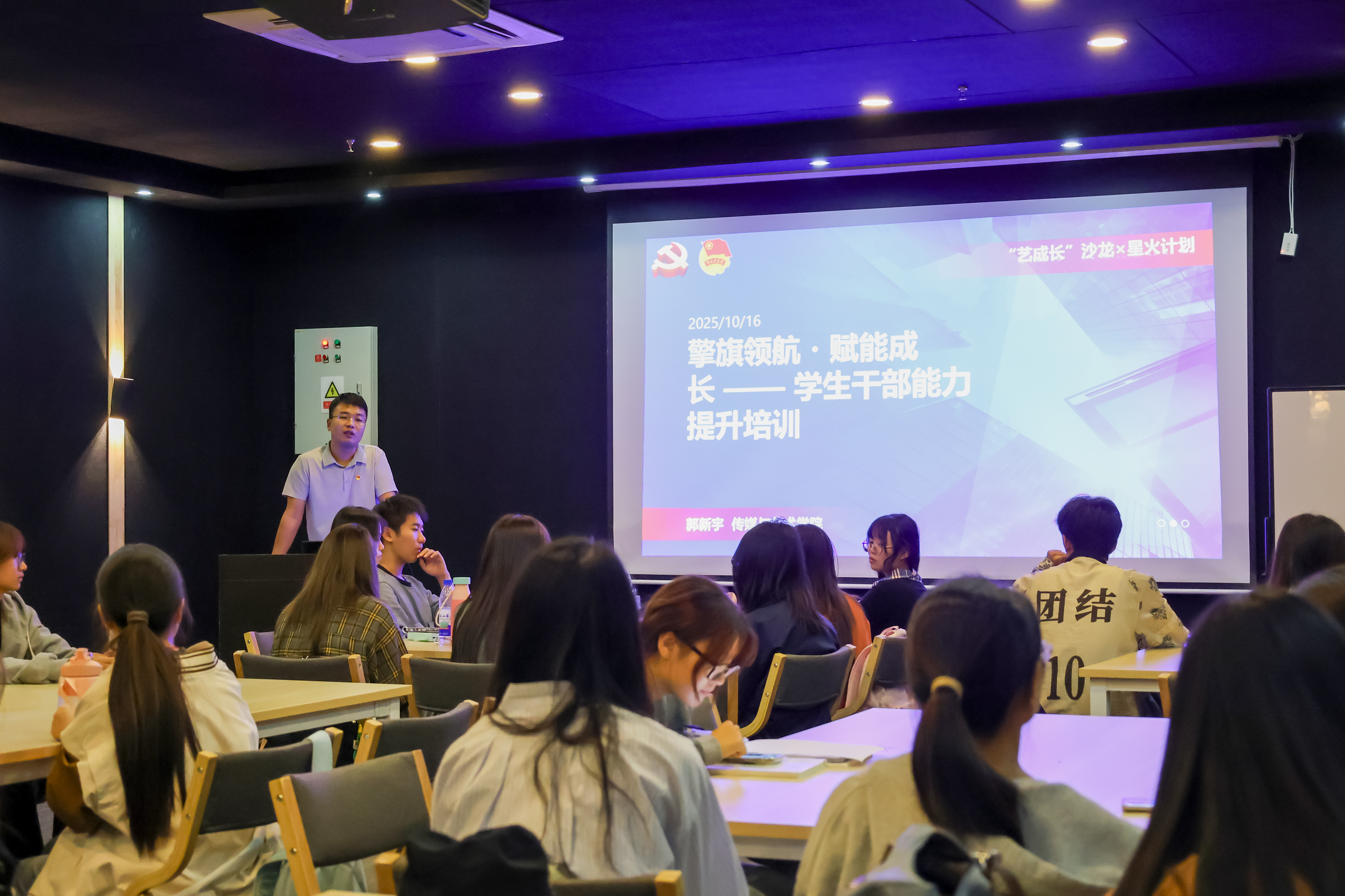 为加强学生干部队伍建设,提升学生干部的综合素质与履职能力,10月16日下午,传媒与艺术学院在尚诚楼110举行“擎旗领航·赋能成长”学生骨干能力提升培训沙龙。传媒院党总支副书记郭新宇出席活动,辅导员代表及学生骨干参与活动。