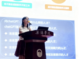 随后,各专业负责人依次进行专业介绍。物联网工程专业负责人孔磊、软件工程专业负责人徐焕宇、计算机科学与技术专业负责人施珮、数据科学与大数据技术专业负责人刘伟,分别围绕课程体系、培养目标、就业方向和专业特色等方面展开讲解,帮助新生准确把握不同专业的发展路径与学习要求。此外,刘伟老师还详细介绍了学院的学科竞赛体系,鼓励同学们积极参与竞赛活动,以赛促学,提升实践创新能力。