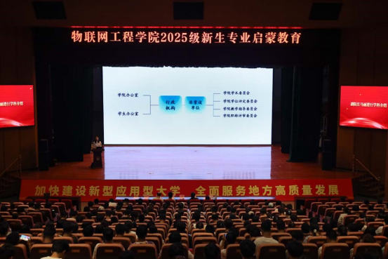 为帮助2025级新生全面了解学科专业体系、明确人才培养目标,10月17日下午,物联网工程学院在大礼堂二楼报告厅举办2025级新生专业启蒙教育大会。物联网工程学院副院长马丽、各专业负责人、新生辅导员、班主任及2025级全体新生参加会议,会议由学院学工办副主任孙昊主持。