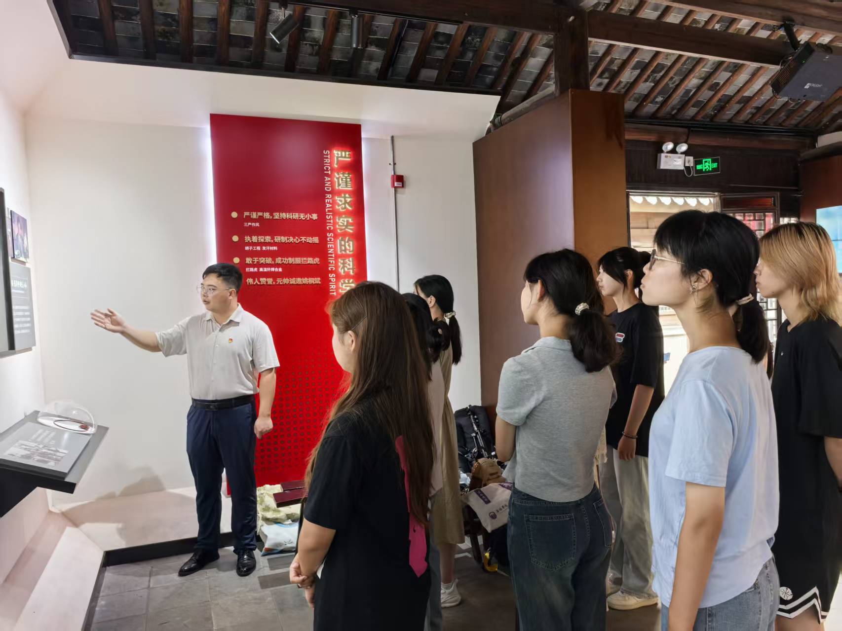 学院党员教师陈诗雯带领2023级学生前往荡口古镇,开展华蘅芳故居参观研学活动。故居展馆系统展示了华蘅芳先生的生平事迹、学术成就与家族文化传承,重点呈现了他主持绘制机械图纸并参与研制中国近代首艘自主建造轮船——“黄鹄”号的历史资料。陈老师结合珍贵历史图片与详实讲解,全面梳理了华蘅芳作为清末著名数学家、科学家和教育家的辉煌人生。此次教学不仅加深了学生对华蘅芳科技与教育贡献的理解,更让大家深刻感受到无锡历史名人深厚的文化底蕴与赤诚报国情怀,实现了思想教育与文化传承的有机融合。