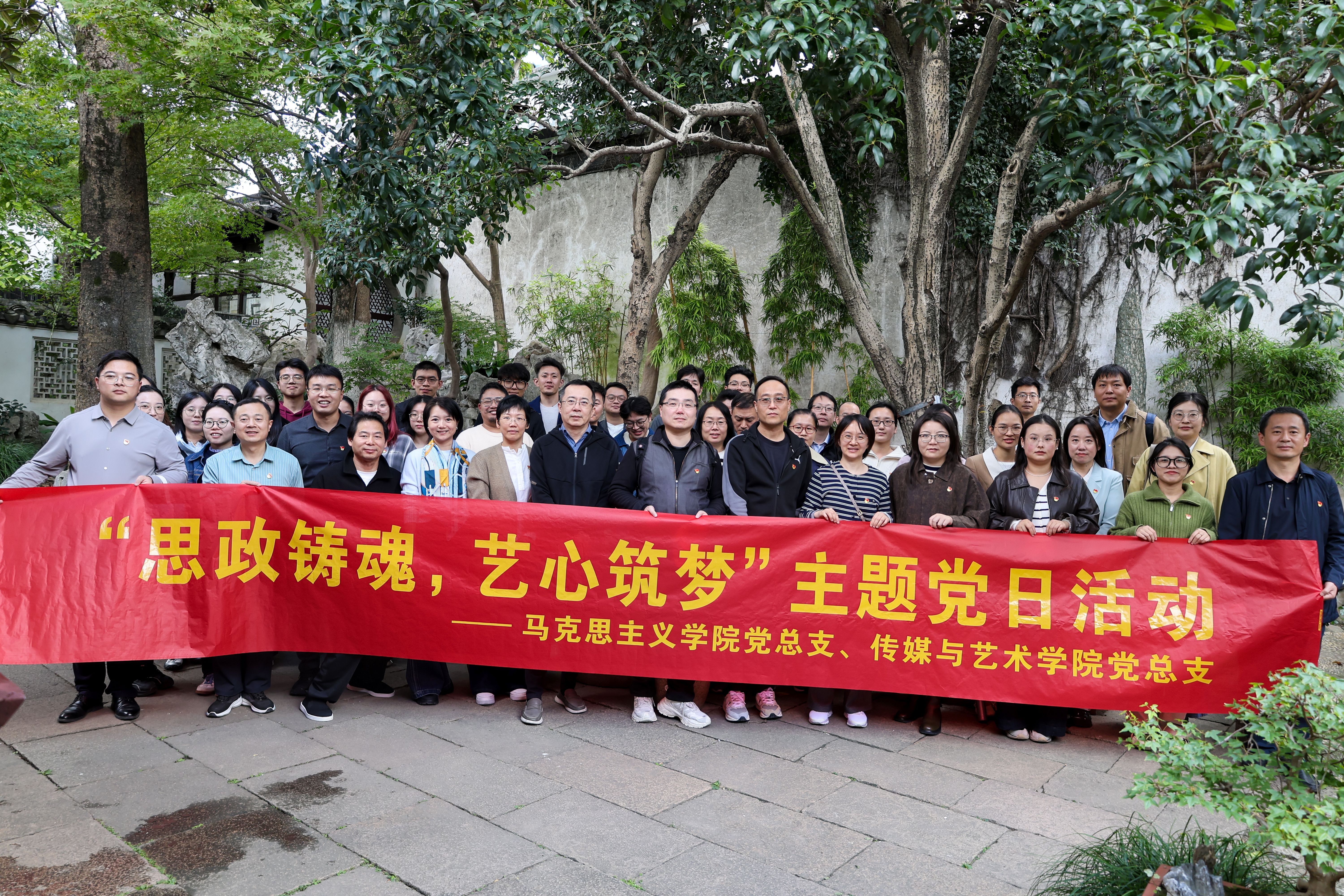 10月24日下午,传媒与艺术学院联合马克思主义学院组织师生代表,赴苏州国画院、苏州美术馆开展主题党日活动。这是两院“美育润心 思政铸魂”协同育人研讨会后的首次实践联动,旨在深化“艺术 + 思政”协同育人工作。