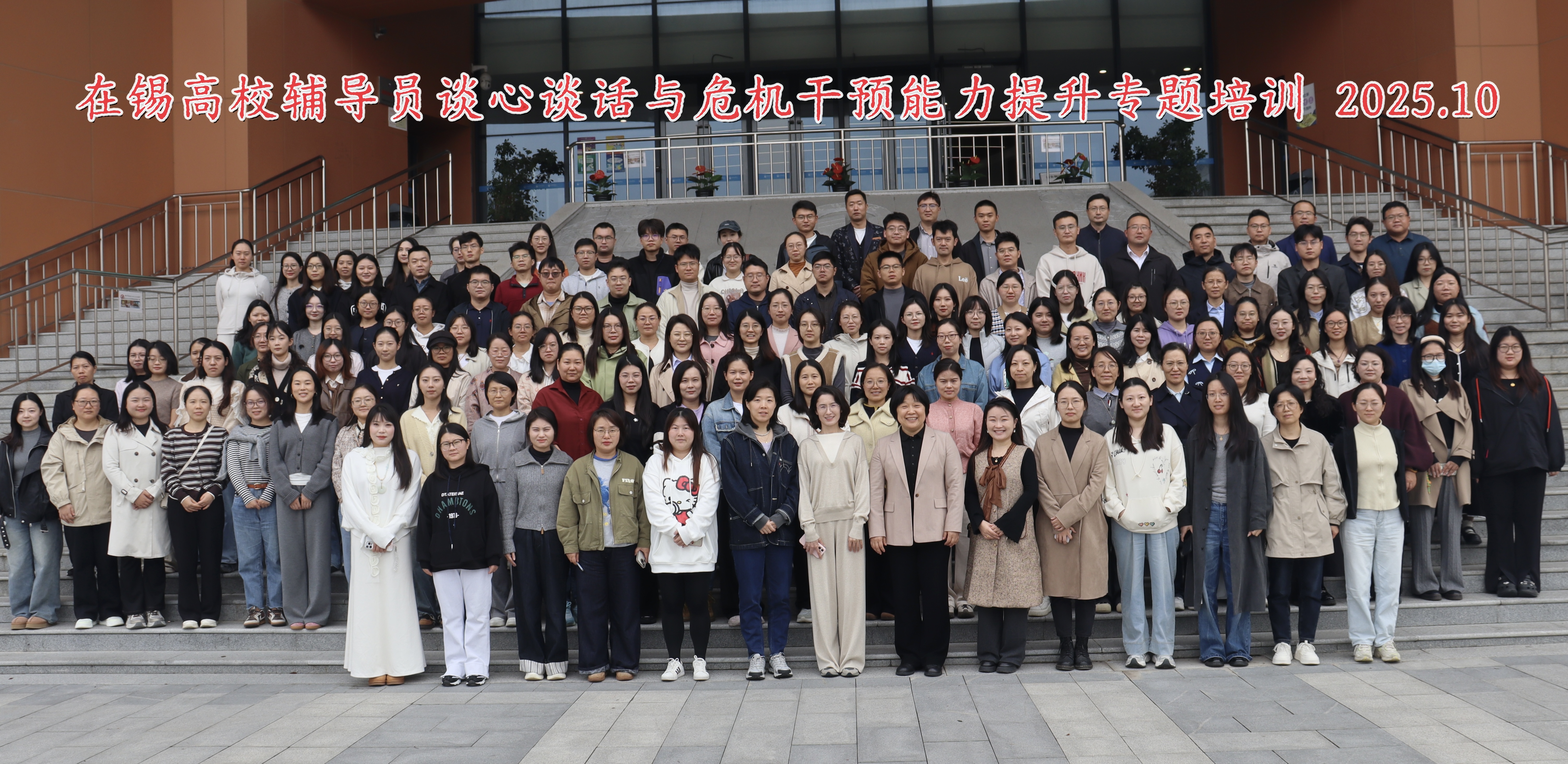 为切实提升在锡高校学生工作队伍的心理健康教育专业素养与实战能力,筑牢校园安全稳定防线,由无锡市心理健康教育与研究中心主办、我校承办的“在锡高校谈心谈话与危机干预能力提升专题培训”于10月30日至31日成功举办。本次培训特邀南京航空航天大学杨雪花教授、苏州大学王平副教授、中国矿业大学范韶维副教授主讲,在锡高校学工干部、心理专兼职教师、辅导员共202人参加培训。