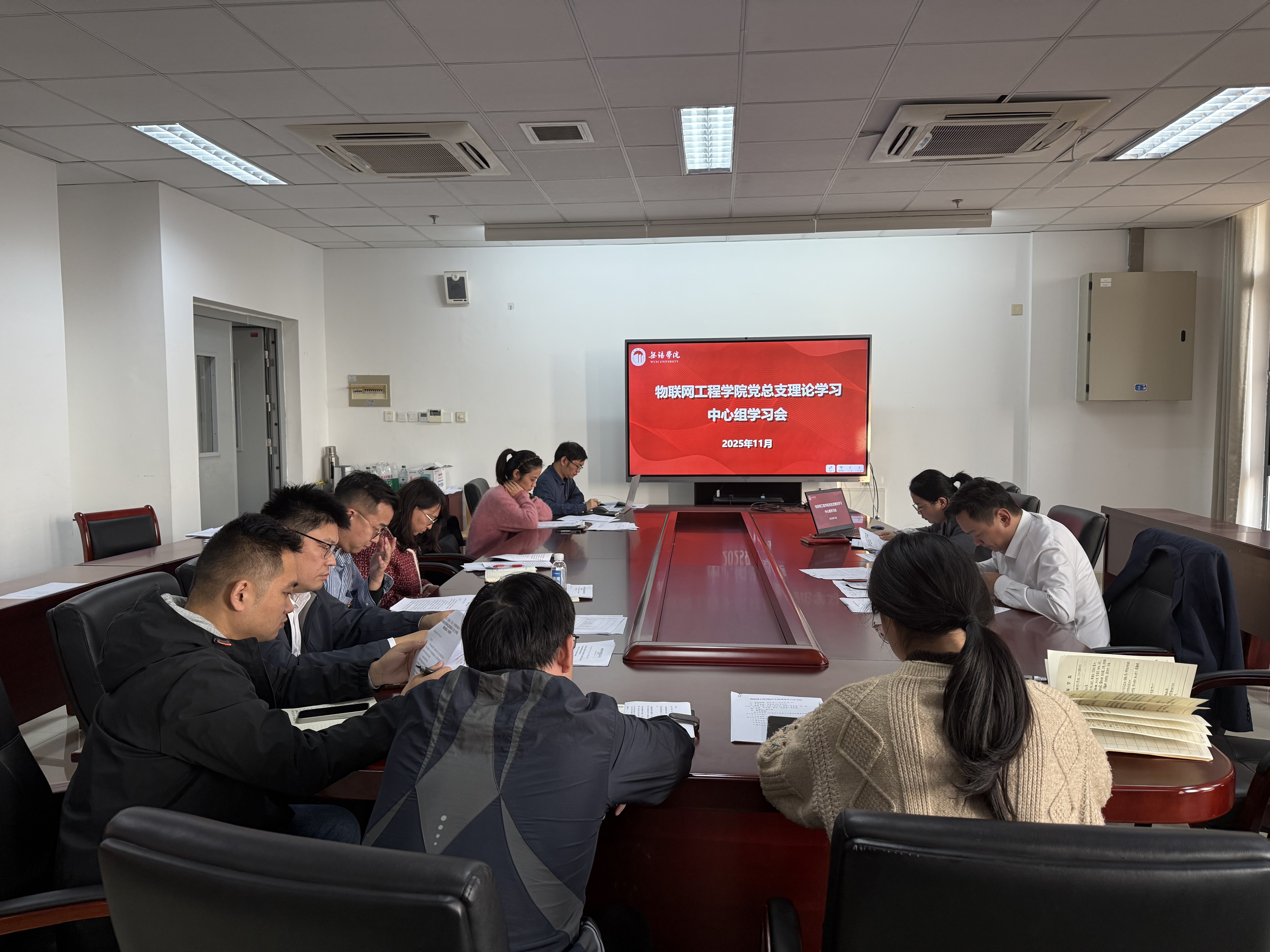 11月5日下午,物联网工程学院党总支理论学习中心组在思源楼305召开专题学习会,传达学习党的二十届四中全会精神。学院全体党总支成员及学生党支部书记参会,会议由院党总支副书记臧文佳主持。