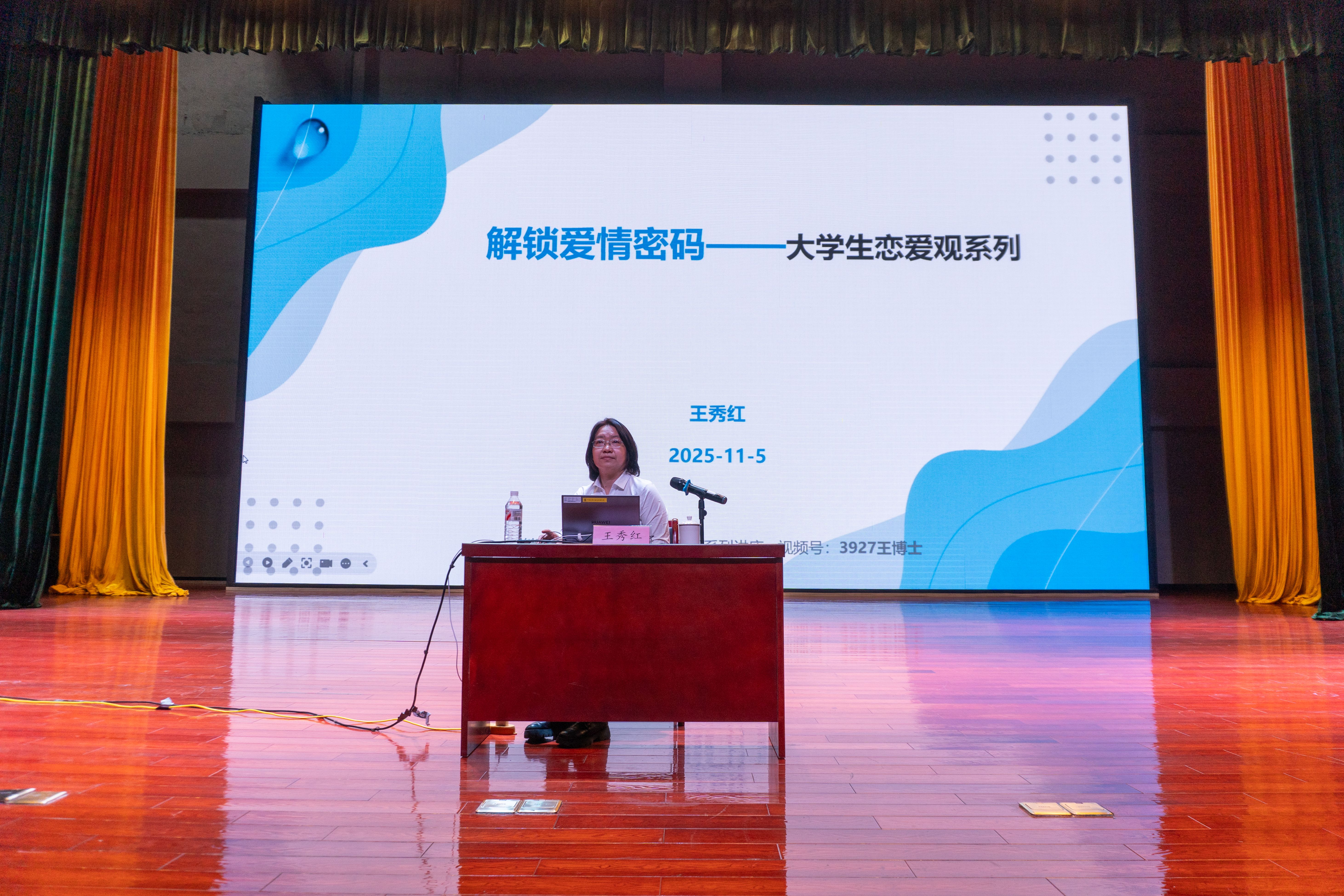 为引导大学生树立正确的恋爱观,提升处理情感问题的能力,促进身心健康发展,11月6日,学生工作处特邀江苏大学王秀红教授,在大礼堂二楼报告厅成功举办了题为“解锁爱情密码——大学生恋爱观”专题讲座。现场座无虚席,气氛热烈,吸引了近500名师生参与。