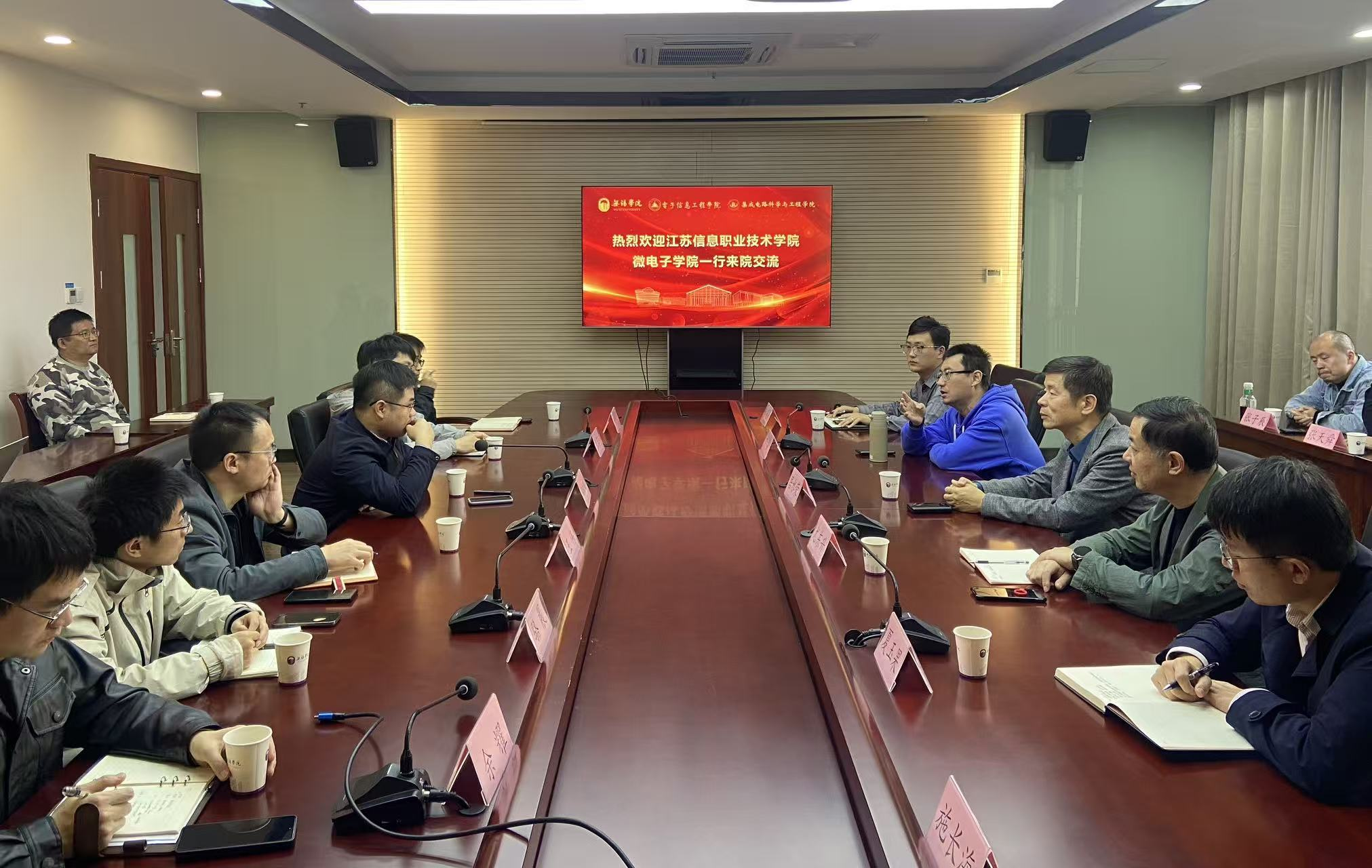 11月13日下午,江苏信息职业技术学院微电子学院院长居水荣率队来我校开展交流座谈。江苏信息职业技术学院微电子学院院长居水荣、科技处处长尤东升、副院长夏玉果,我校电子信息工程学院院长李松斌、副院长王伟及双方相关部门负责人、骨干教师代表参加座谈。
