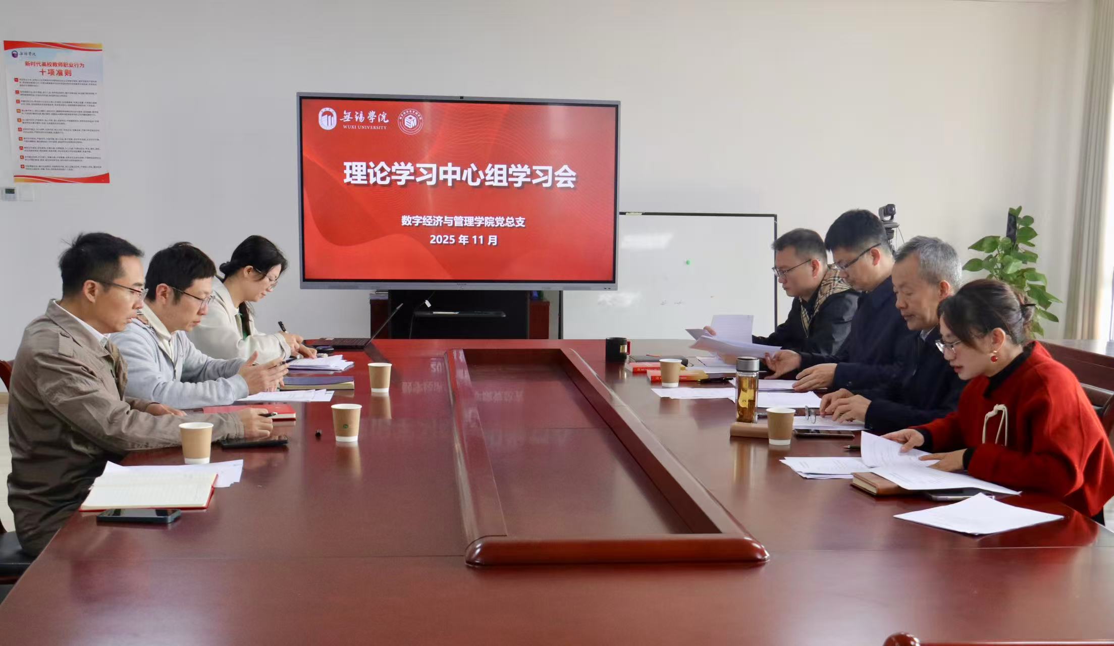 11月14日上午,数字经济与管理学院党总支理论学习中心组在尚美楼504会议室召开专题学习会,传达学习党的二十届四中全会精神。学院全体党总支理论学习中心组成员参会,会议由党总支副书记李诗雅主持。
