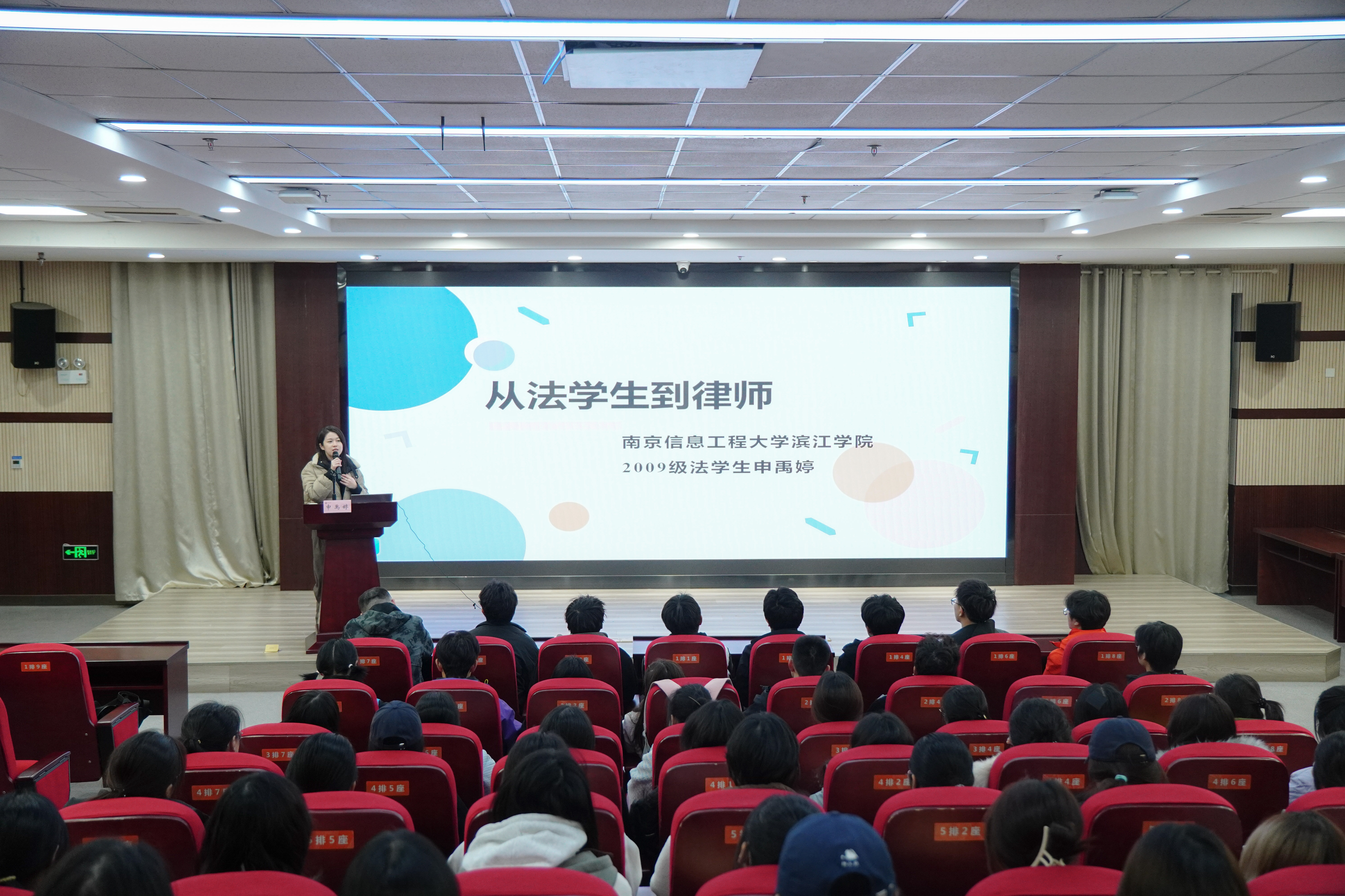 为深化法学理论知识与实际的结合,提升法学专业学生对于未来职业发展的认识,激发其为目标奋进的内驱力,11月18日,马克思主义学院(法学院)特邀2013届法学毕业生、江苏云崖律师事务所律师申禹婷来校进行职业生涯规划讲座。活动由辅导员董磊主持,2025级全体学生参加。