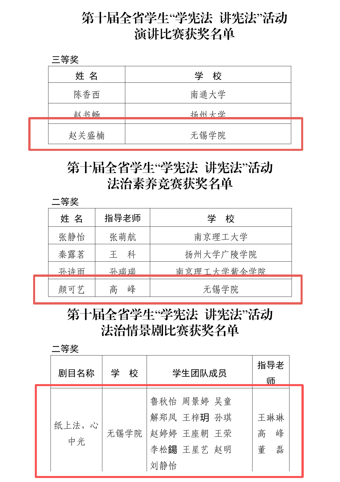 近日,由江苏省教育厅主办的第十届全省学生“学宪法 讲宪法”比赛圆满结束。我校参赛选手和选报作品均获得省级奖励,其中省级二等奖2项、三等奖1项。