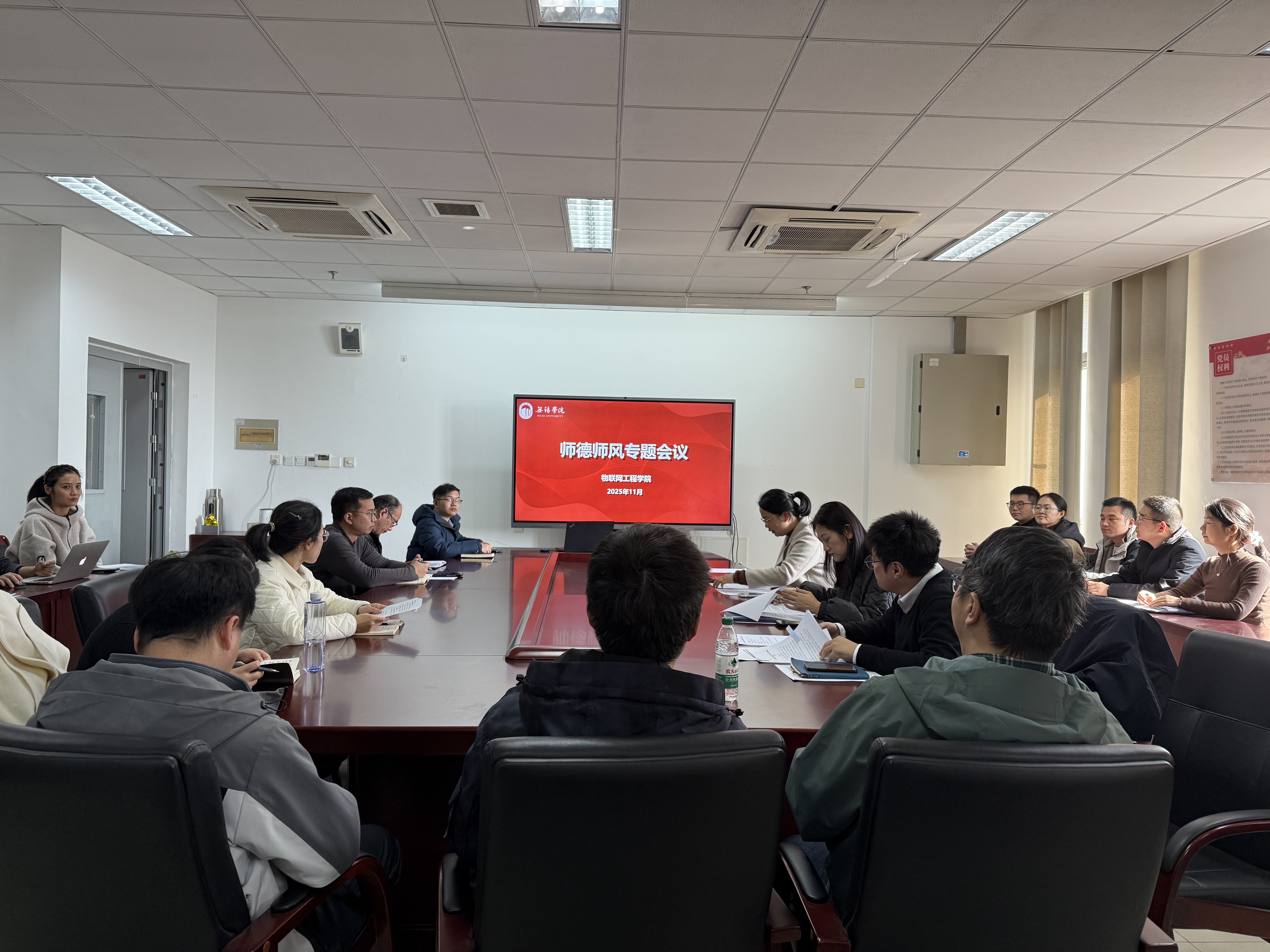 为深入推进师德师风建设,强化教师队伍的职业道德素养,11月26日,物联网工程学院在思源楼305会议室召开师德师风专题会议。党总支副书记臧文佳,学院副院长阚希、马丽及全体教职工参加会议,会议由臧文佳主持。