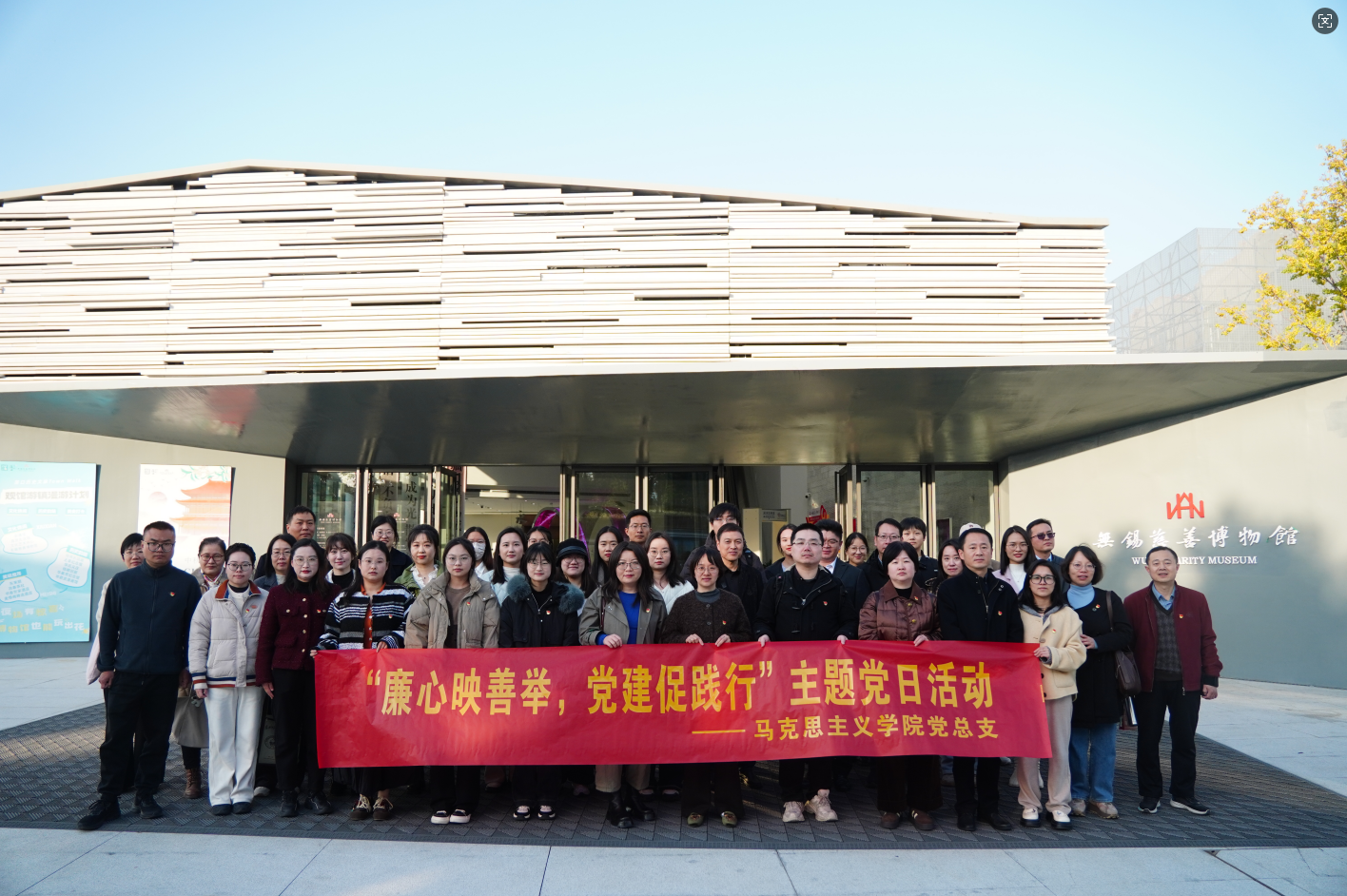 为推动党建与业务工作深度融合,深化思想政治理论课改革创新,赋能学院高质量发展,11月26日下午,马克思主义学院(法学院)组织师生党员赴无锡慈善博物馆,开展实践教学基地合作共建暨“廉心映善举,党建促践行”主题党日活动。