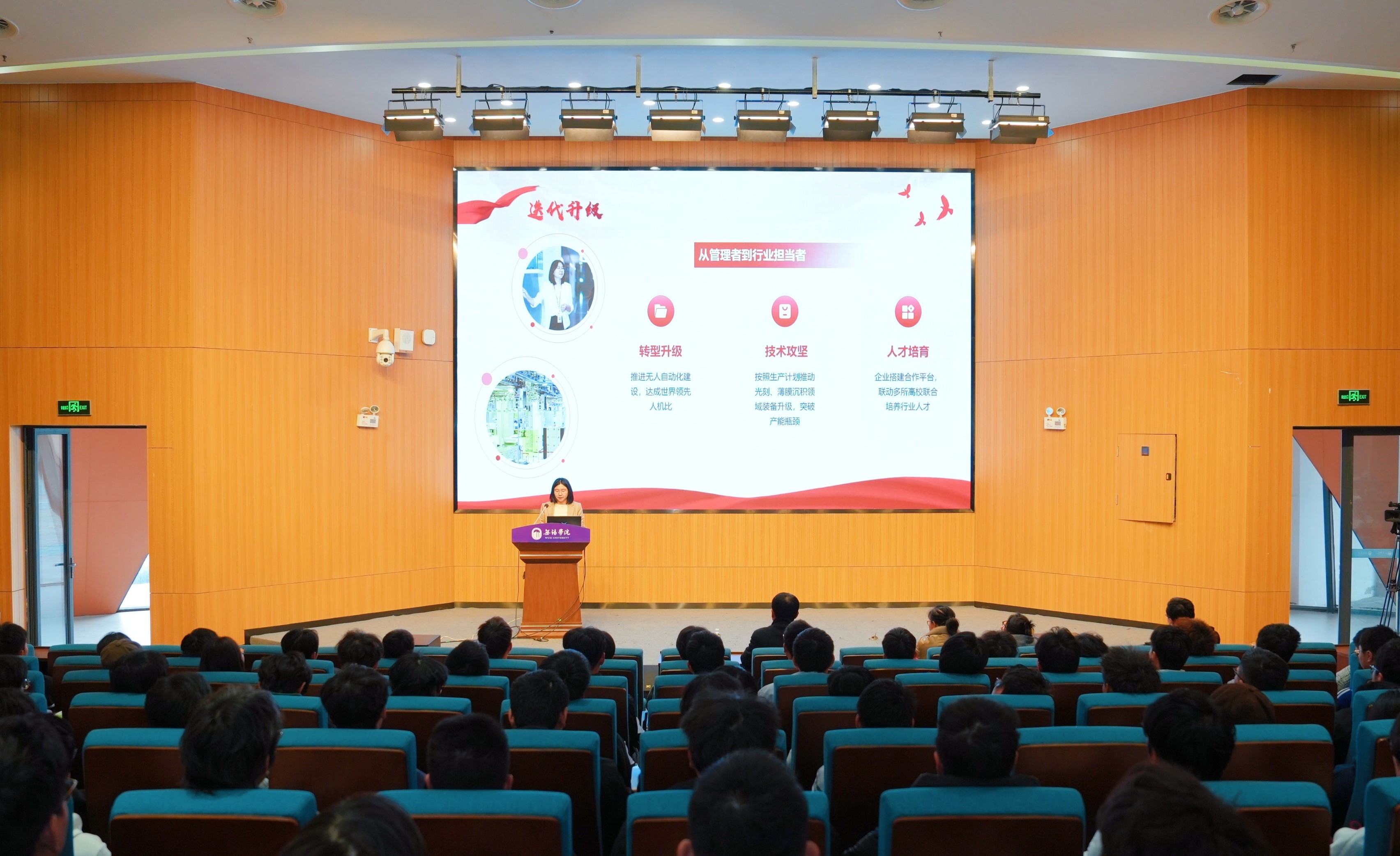 11月27日,由马克思主义学院(法学院)协助无锡市总工会等部门,联合校党委宣传部、校工会共同主办的“劳模工匠进校园”活动顺利举行。全国劳动模范、第十四届全国人大代表、SK海力士半导体(中国)有限公司高级工程师兼生产部经理孙华芹受邀莅临校园,以“坚守岗位展风采,履职为民显担当”为主题,为全校学子讲授了一堂内涵丰富、催人奋进的思政公开课。