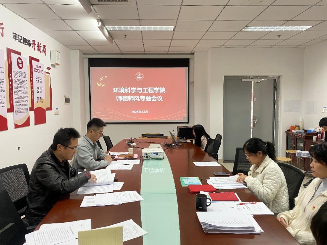 为深入贯彻落实立德树人根本任务,健全师德师风建设长效机制,切实加强学院教师队伍思想政治建设,12月10日下午,环境科学与工程学院在尚诚楼 301会议室召开师德师风专题会议。院长钱杰书、党总支副书记姜欢出席会议,学院全体教职工参加会议,会议由姜欢主持。