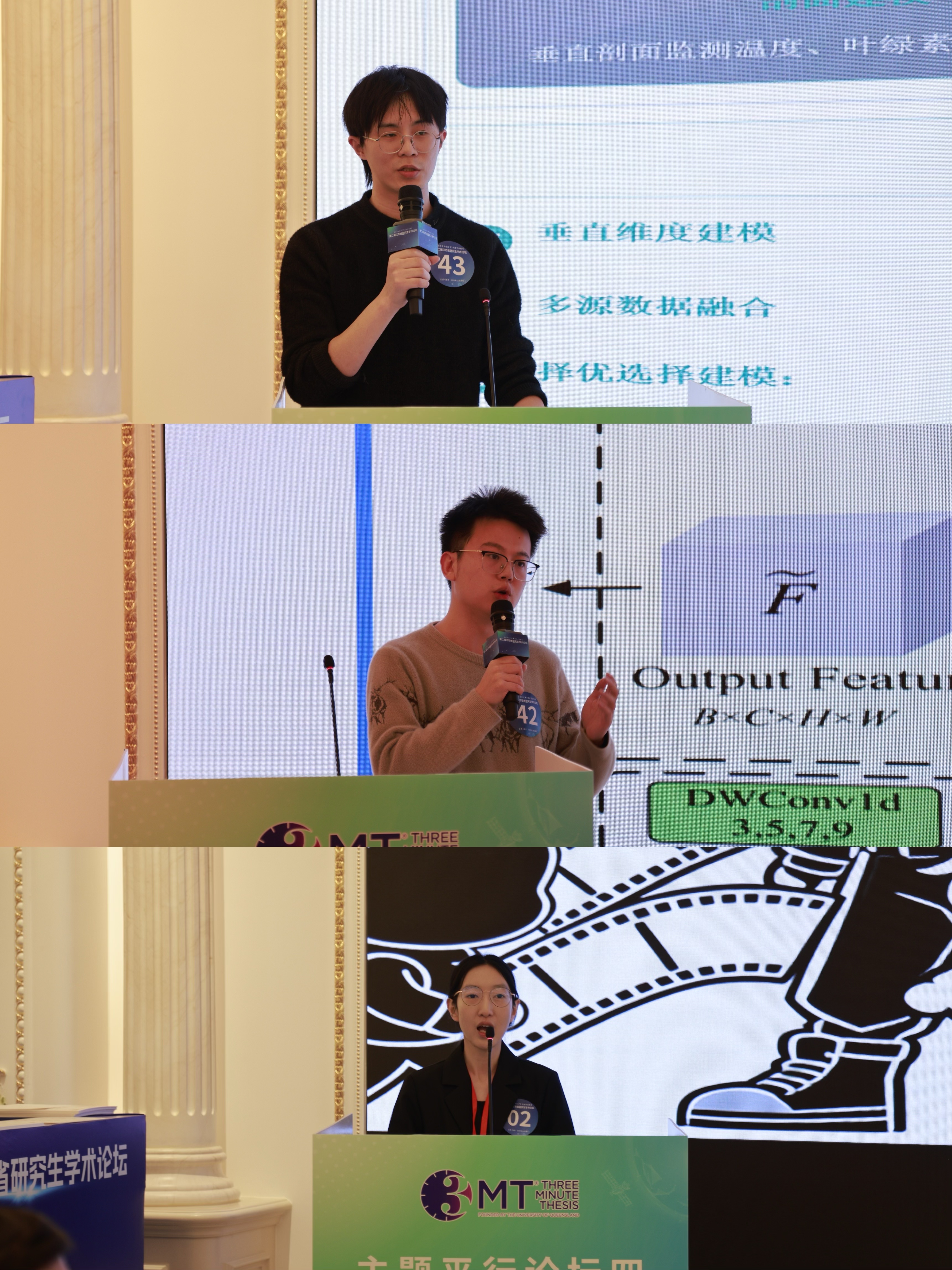 在第四分会场,聚焦专业实践与技术创新的舞台上,我校联培研究生表现尤为亮眼。会计专业的王若旋同学《当IP“出圈”,企业钱包如何鼓起来?》为题,通过晨光故宫联名、奥特曼IP等鲜活案例,深入剖析了IP衍生业务的盈利逻辑,创新提出了多渠道授权、联名跨界等“三驾马车”式的财务赋能策略,为企业增收提效开辟了新路径。环境工程专业的魏航安同学针对太湖水华治理的难题,在《给太湖“号脉”:如何治理水华病症?》的报告中,提出了“垂直剖面+遥感融合”的双模型创新方案,通过无人船水质采集与遥感数据的有机结合,为水华预测与治理提供了坚实的科学支撑,彰显了科研服务社会的责任担当。电子信息技术专业的葛明凯同学则在《如何在复杂世界中追踪目标:高光谱成像的未来探索》中,创新性引入空间-光谱注意力机制,有效攻克了高光谱目标跟踪中的遮挡、光照变化等技术瓶颈,其研究成果在环境监测、农业、军事侦察等多个领域展现出广阔的应用前景。