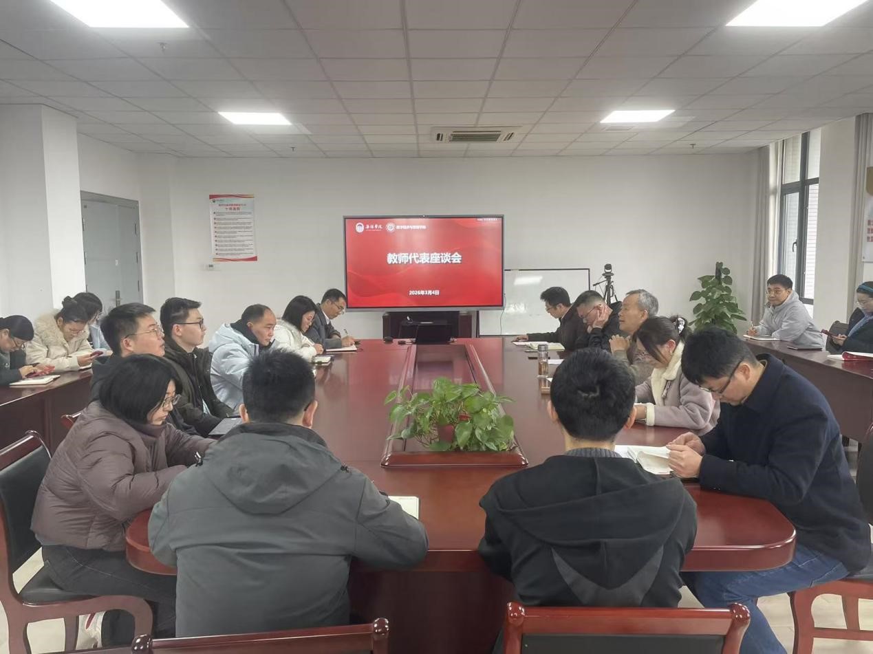 为进一步凝聚发展共识、倾听一线教师心声,推动学院各项事业高质量发展,2026年3月4日下午,数字经济与管理学院(应急管理学院)在尚美楼504会议室召开教师代表座谈会。学院院长刘军、党总支副书记李诗雅等领导班子成员及40余名教职工代表参加会议。