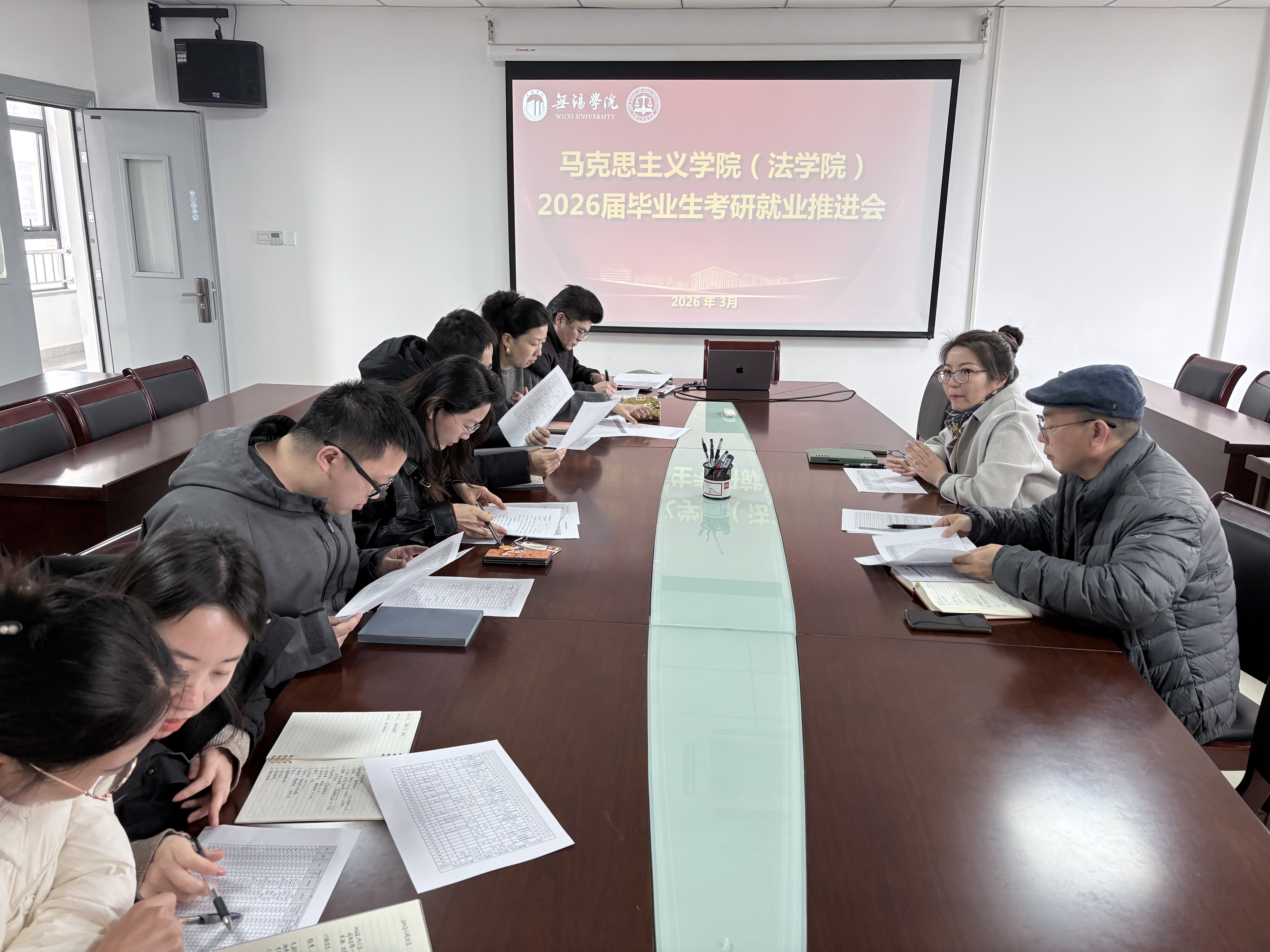 为扎实推进2026届毕业生考研与就业工作,全力保障学生高质量就业,3月4日,马克思主义学院(法学院)于尚真楼511会议室召开考研、就业工作推进会。副院长张运书、党总支副书记王琳琳、法律系全体教师、毕业班辅导员参加此次会议。会议由王琳琳主持。