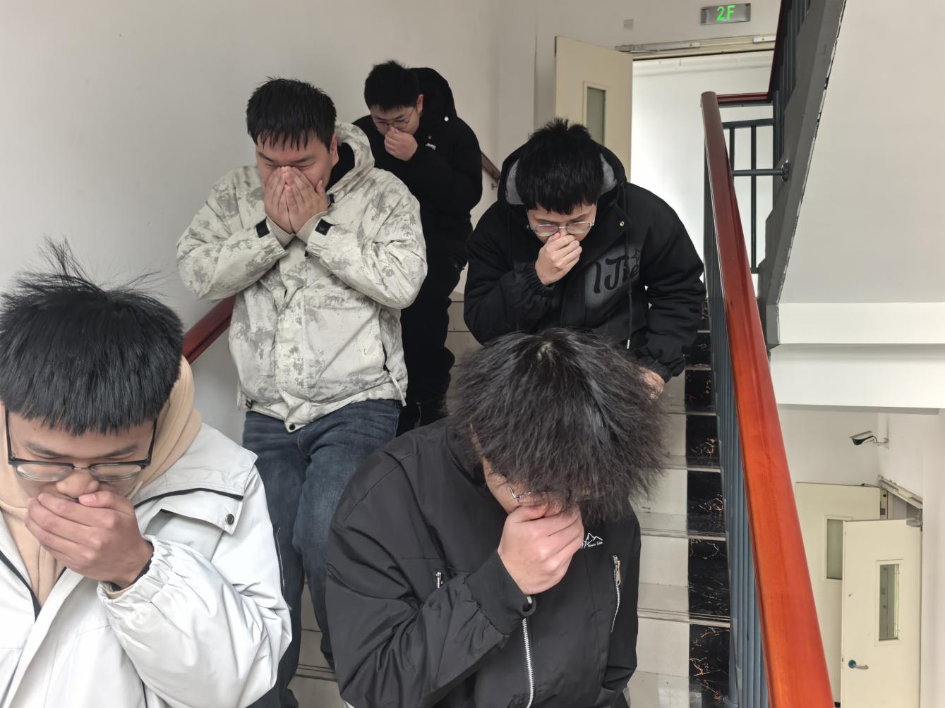 演练前,专业消防指导员向全体参与人员明确了疏散路线、集结区域及逃生注意事项。随着疏散指令发出,宿舍疏散演练正式启动。各宿舍学生迅速响应,捂住口鼻、低姿有序撤离,沿指定路线靠右行进。宿管人员与辅导员全程引导,确保学生安全有序到达集结区域。随后,各辅导员迅速清点人数并上报,保卫处汇总反馈整体疏散情况,确认无人员遗漏。