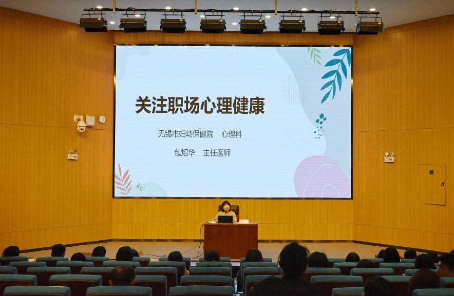 活动邀请无锡市妇幼保健院心理科主任医师包炤华担任主讲。包主任以“职场心理健康”为主题,结合当下职场人心理现状,围绕压力来源、预警信号、减压方法、工作生活平衡等内容,系统讲解了心理调适技巧与情绪管理方法。讲座既有专业理论讲解,又有简单易行的减压方法,帮助教职工科学疏导压力、增强心理韧性,引导大家在忙碌工作中学会自我关怀、积蓄能量。讲座结束后,老师们围绕日常工作生活中的心理困惑与包主任展开交流,包主任耐心解答并给予专业指导,现场互动热烈。