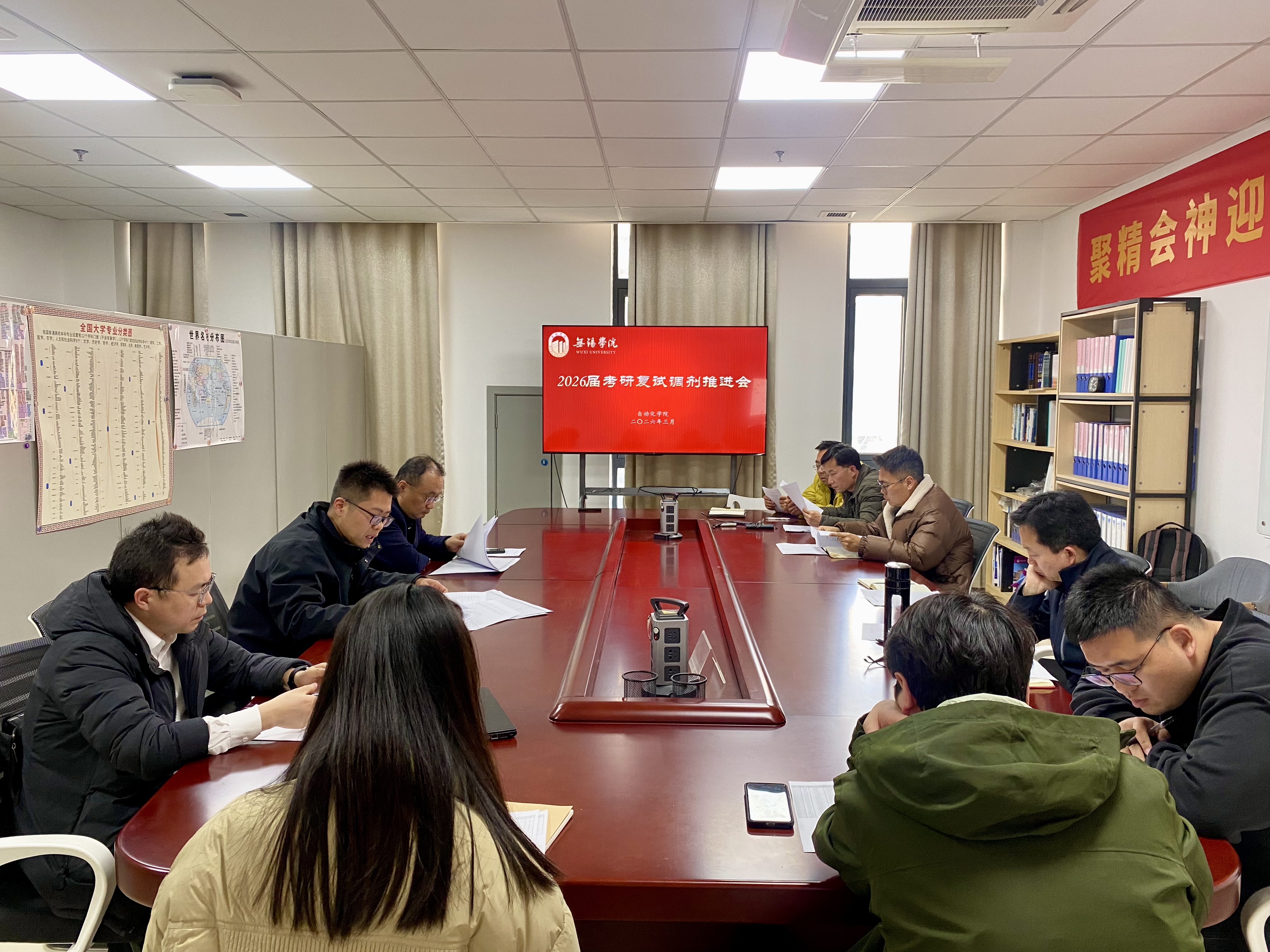 为抢抓2026届考研复试调剂关键节点,精准部署升学帮扶工作,3月16日下午,自动化学院在思齐楼301会议室召开2026届考研复试调剂推进会。自动化学院院长李鹏、党总支副书记王明杰,副院长花国祥及各专业系主任、毕业班辅导员等参加会议。会议由王明杰主持。