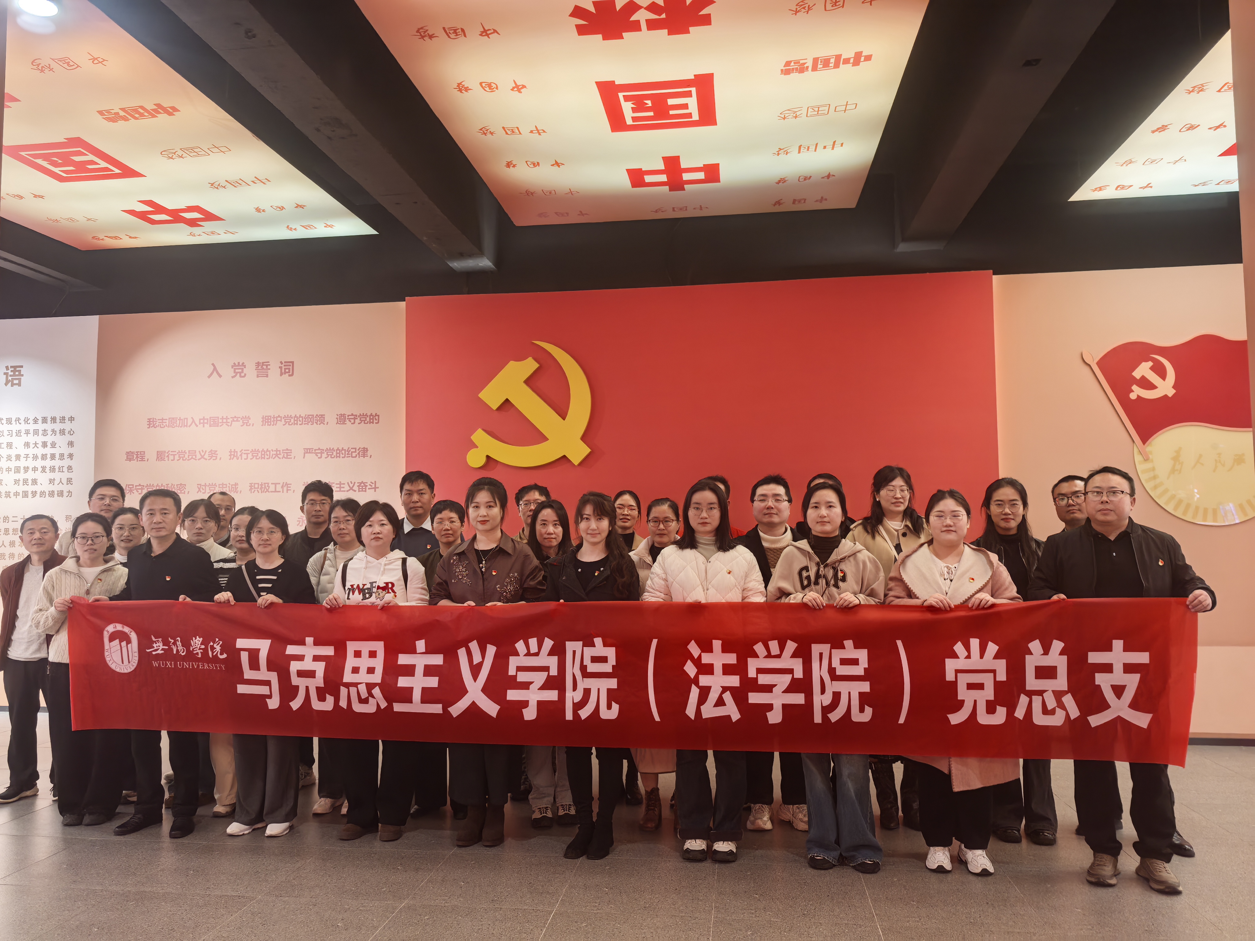 为深入学习贯彻习近平新时代中国特色社会主义思想,强化党性教育、锤炼师德师风,推动党建与思政育人深度融合,3月25日下午,马克思主义学院(法学院)党总支组织全体党员教师赴常州大学红色文化主题教育馆(红馆)开展主题党日活动。学院党总支副书记林峰及全体党员教师参加活动。