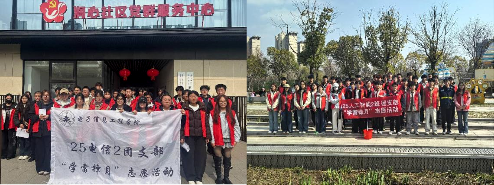 为深入践行雷锋精神,推动志愿服务走深走实,电子信息工程学院、集成电路工程学院组织各团支部开展系列志愿服务活动。从校园到社区,从科普润童心到暖心助邻里,从环保宣讲到环境焕新,各支部紧跟步伐,将专业特色与志愿行动深度融合,用实际行动诠释新时代雷锋精神的内涵,让“奉献、友爱、互助、进步”的志愿精神蔚然成风。