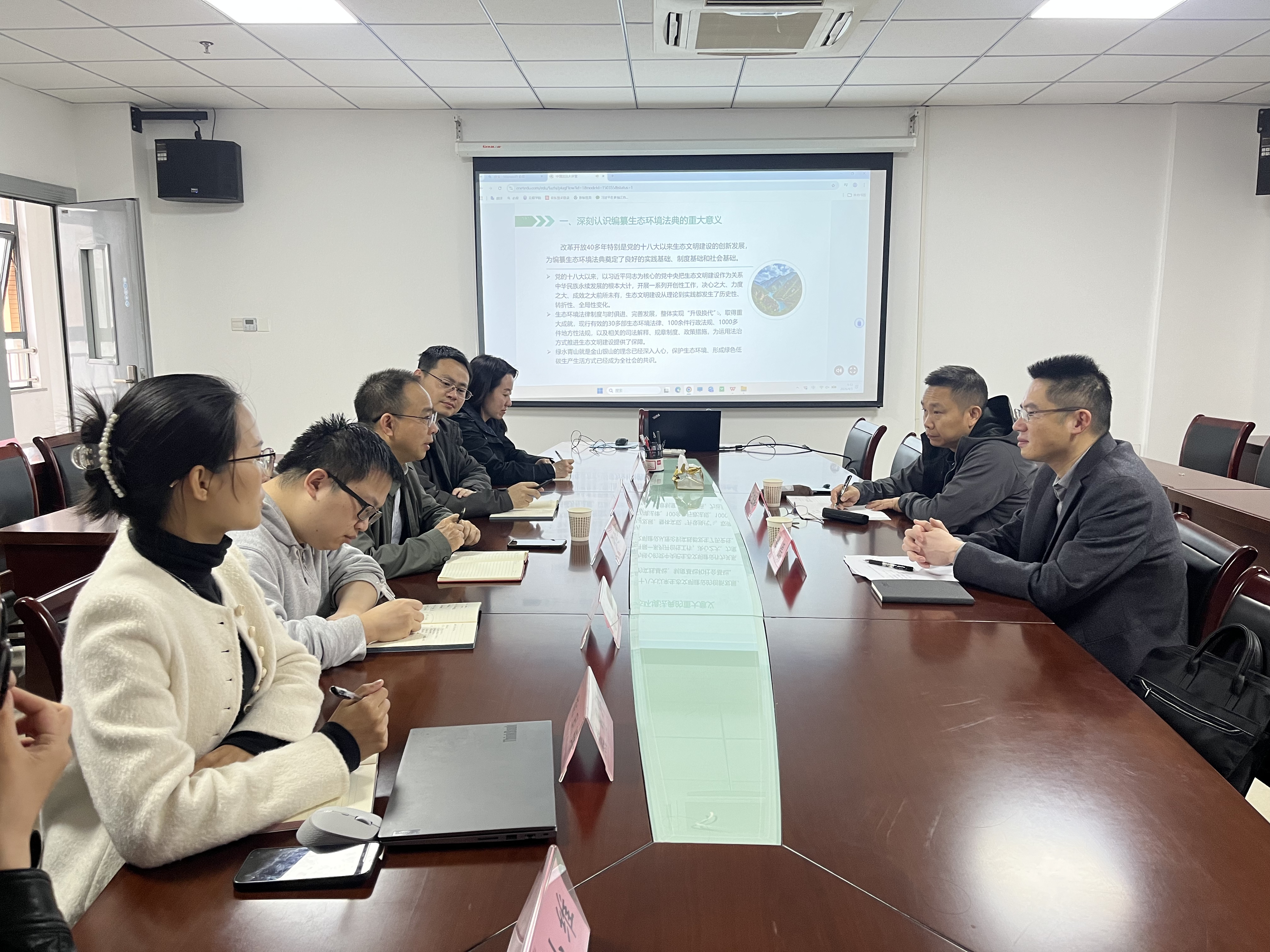 观看结束后,参会教师展开热烈讨论、分享学习感受。大家一致认为,生态环境法典作为我国第二部以“法典”命名的基本法律,是推进生态文明建设的重要法治保障,彰显了国家以法治力量守护绿水青山的坚定决心。教师们纷纷表示,此次学习收获颇丰,不仅深刻认识到生态法治建设的重要性,更明确了自身职责,今后将把生态法治理念融入教育教学全过程,积极引导学生树立环保意识和法治观念,同时立足本职岗位,践行绿色低碳生活方式。