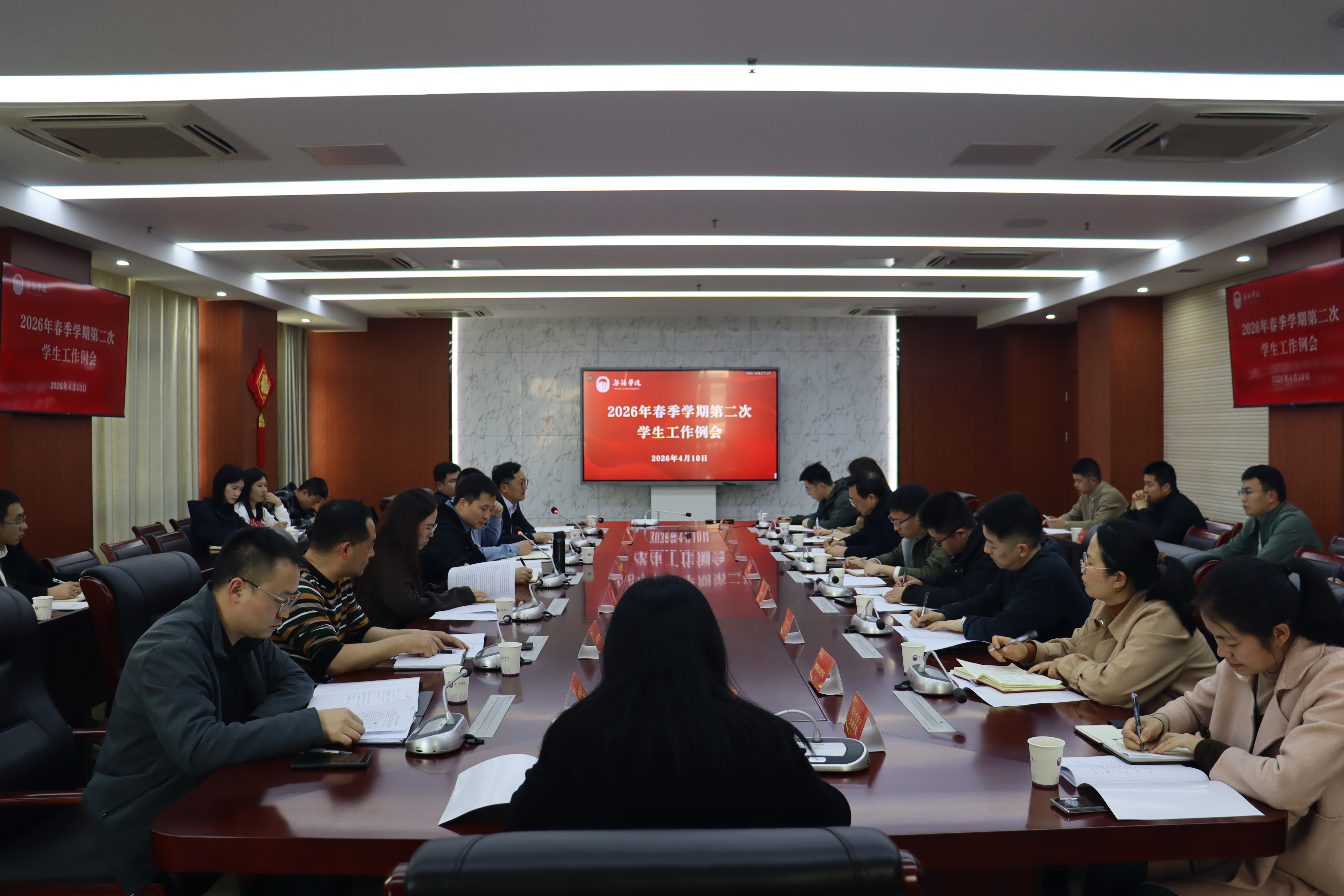 4月10日下午,我校在行政楼327会议室召开2026年春季学期第二次学工例会。副校长韩建刚出席会议,相关职能部门负责人及各二级学院学生工作负责人参加会议。