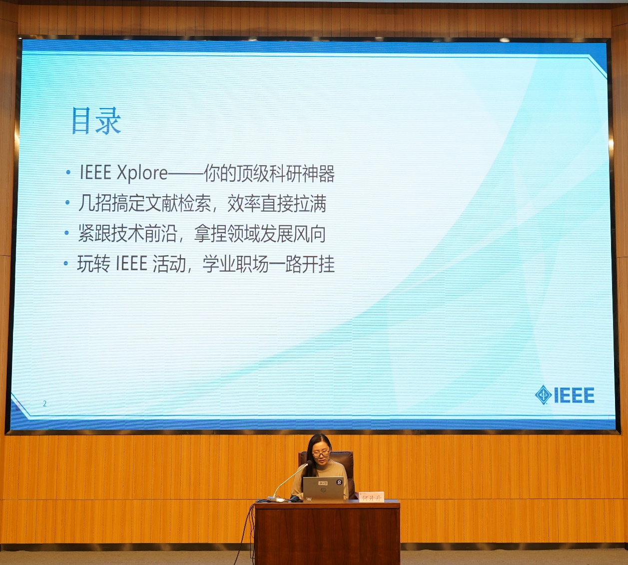 为帮助师生熟练使用电子资源、高效获取前沿科技文献,4月15日下午,图书馆在学术报告厅举办“解锁科研新姿势,IEEE助力无锡学院高效发展”专题讲座。