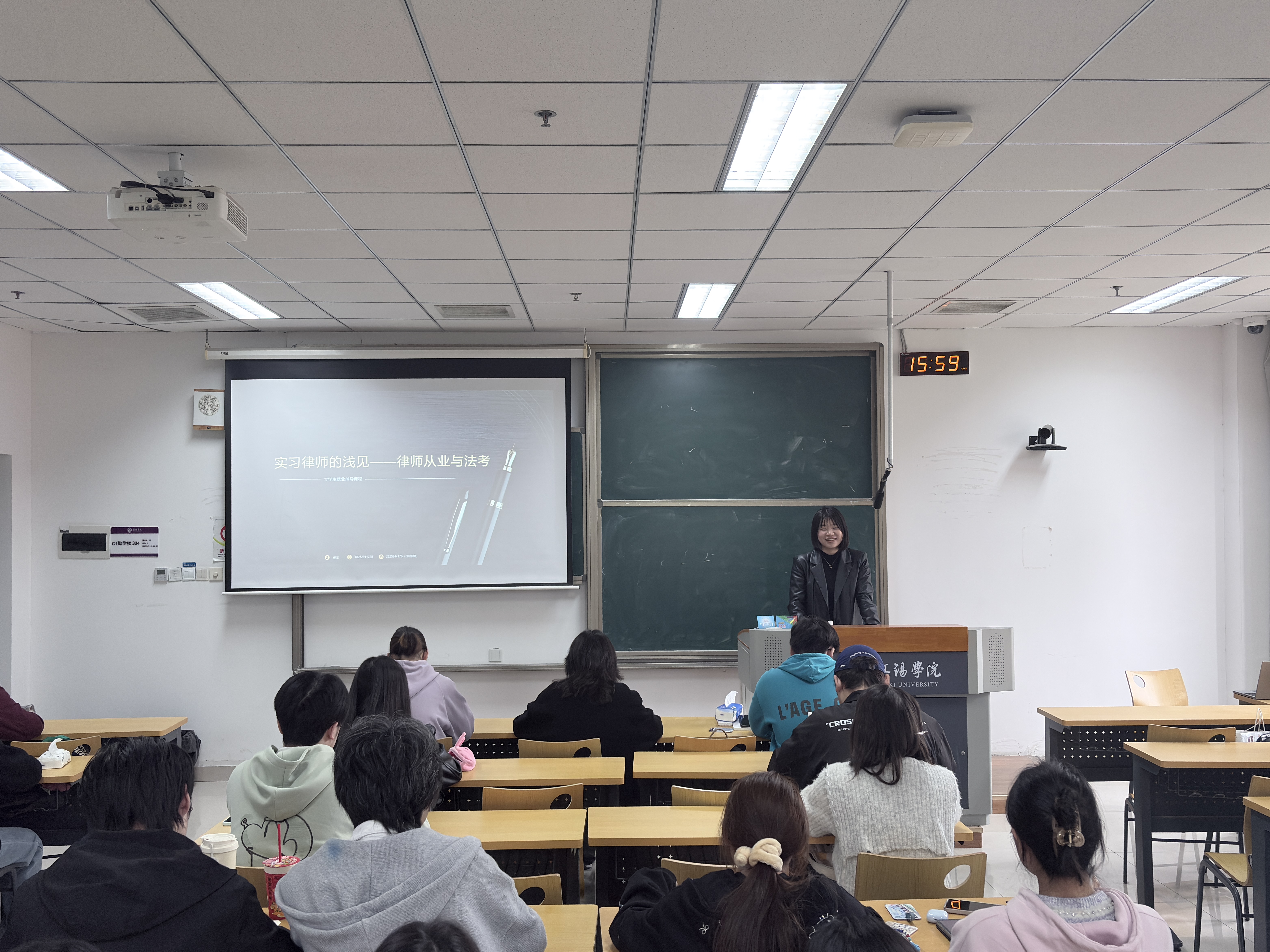 为进一步做好法学专业大学生的职业生涯规划,帮助学生明晰行业现状、拓宽就业视野,4月14日,马克思主义学院(法学院)举办优秀校友就业经验分享会。本次活动特邀我院21级法学班优秀毕业生、现就职于江苏海辉律师事务所的杨洋重返母校,以《实习律师的浅见——律师从业与法考》为题,为23级法学1班的同学们带来了一堂生动务实的“职场预备课”。