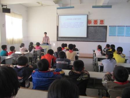 陈亚川同学给同学们讲了中国共产党于我们今天幸福生活的重要意义,引出了本次活动的主题——学党史、感党恩、树信念,向小学生们介绍我们党的光辉历史。姚晨等同学为小学生们讲了党的徽章,党的历史以及入党的基本条件。为了加深同学们对共产党的理解以及对党员的基本认识,还播放了刘胡兰,邱少云,董存瑞等的相关视频,并为他们讲解了这些优秀党员们为国捐躯的感人事迹。
