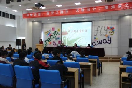 活动特别邀请了会计系主任李长青老师、著名注册会计师、资深教师陆靖老师、会计系学办负责人郑晓坤老师以及优秀学生代表2010级会计学专业陈颖同学作为讲座嘉宾。李长青与陆靖老师就会计专业课的设置、考级考证以及会计行业就业情况作了详细介绍。郑晓坤老师围绕“尊重、责任、宽容、纪律、规划”五个要点解答了如何实现角色转变,适应大学生活,做一名出色的大学生,并介绍了近几年来会计系考研的情况及今后考研的前景。最后,陈颖同学作为学姐亲切地与新生们分享了自己的学习经验以及成功秘诀。
