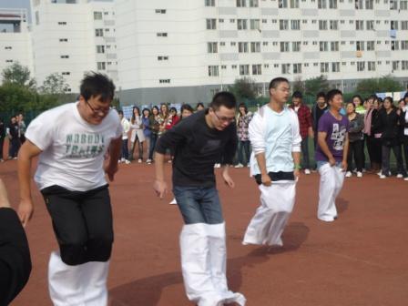 为促进同学们与宿管阿姨们之间的情感交流,增进同学间的友谊,10月30日下午,我院在足球场上举行了一场别样的趣味运动会,趣味运动会由西苑后勤服务中心公寓部主办,滨江学院学生会承办。新奇有趣的参赛形式吸引了众多同学和宿管阿姨们的参加。