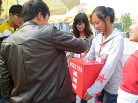 我院师生积极加入了此次募捐活动,爱心在募捐箱里不断累积,康师傅冰红茶公司还特意为准备了物资义卖。