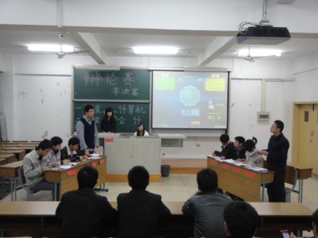 评委们经过激烈地讨论,主席宣布了本场半决赛的结果:计算机系和自动控制系成功晋级总决赛,大气遥感系一辩、会计系三辩分别获得了本场的最佳辩手。