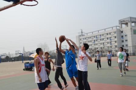 3月28日下午,院学生会新闻媒体部和宣传部在滨江篮球场展开了一场篮球友谊赛。