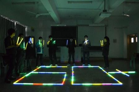 8:30,同学们熄灭所有灯光,用荧光棒在地上摆出“60+”标志,探讨“关灯以后,我们还可以做些什么?”。据悉,自控系学生会将成立环保小组,将一些好建议付诸实施。