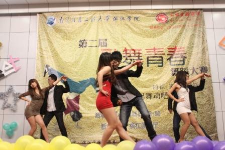 舞蹈大赛共11支参赛队伍,分三组进行比拼。在一氧化碳乐队带来的劲歌后比赛正式开始。首先出场的是实践部带来的《潇洒小姐》,立刻把比赛的火热气氛点燃,随后于青青同学表演的《天竺少女》让观众着实体验到了天竺风情。而女生部和体育部联合舞蹈的《TROUBLE MAKER》充满了激情和诱惑,赢得在场的阵阵尖叫。在两组比赛结束后,神奇的魔术表演给观众和选手们在这紧张热烈的氛围里得以一丝喘息,最后大艺团的《GIRLS》又再一次把比赛推向高潮,整个报告厅为之沸腾。