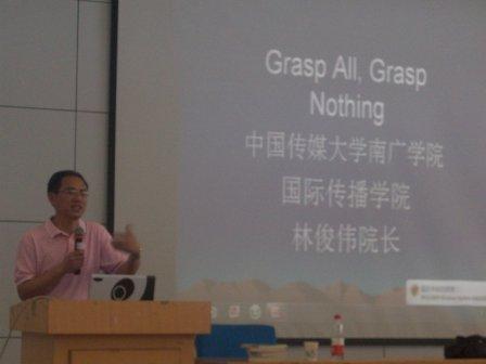 讲座诚邀中国传媒大学南广学院国际传播学院林俊伟院长主讲,林教授有针对性地为同学们指明了应对大学生英语四级考试的策略,针对词汇、听力、阅读、翻译、写作等方面作了详细的讲解并对时间分配及答题要求和技巧作了详尽的描述。