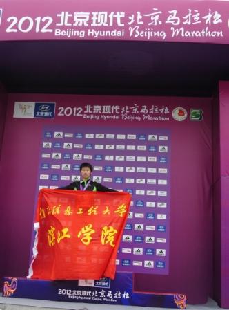 自动控制系2011级电气工程与自动化学生王宇近日参加了北京马拉松赛,以3小时22分32秒的成绩顺利跑完全程,成为南京信息工程大学第一个跑完全程马拉松的人。