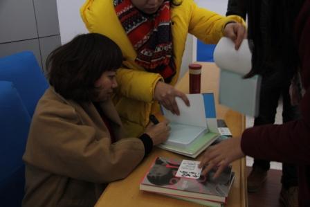 饶雪漫的到来,令许多同学激动不已。许多同学表示饶雪漫的书陪伴她们度过了青葱岁月,更有甚者,从包里掏出了饶雪漫的全套作品,他们对能现场见到作者本人感到十分兴奋。