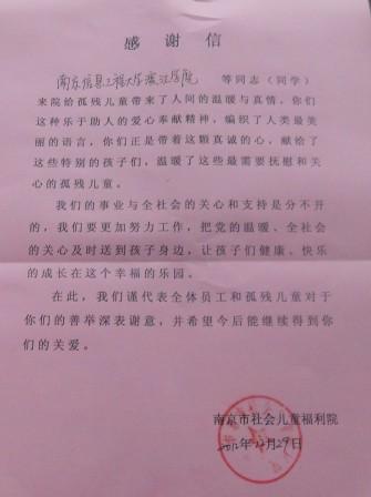 来自福利院的感谢信