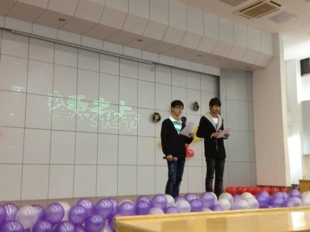 本次大赛以宿舍为单位共有八组选手参加当晚决赛。比赛分成两轮,第一轮是你猜我画,每组派出其中两人背对背挤破背中间的气球,找出气球中的纸条,按照纸条的词语比划给另外两个人,猜对了即可得分,限时两分钟,经过一番角逐,淘汰了四组选手。中场还加入了学生会同学精心准备的小品《屌丝的一天》,将在校大学生在宿舍的生活活灵活现的展现出来,充分展现了当代大学生的蓬勃朝气。第二轮是成语接龙,两两比拼,没接上的要站在折叠的报纸上,输一次,对折一次,选择最后的优胜者, 11幢610宿舍摘得桂冠。