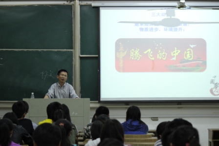 魏教授由马丁路德金的“I have a dream”引出关于梦想的话题,随后结合实际案例,分别从时代解读、时代特征、三大动力源、中国梦见证、富强三部曲、警示与内涵、影响意义七大方面做出精彩阐述,并从国际国内环境出发,总结出“中国梦”重要思想的必要性。最后,鼓励大学生要俯下身来,从小事做起,刻苦学习、增长才干,为“家”筑梦,为国奋斗。