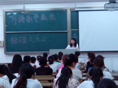 6月 19日下午外语系在BN203举办了毕业生经验交流会。交流会邀请了外语系辅导员朱立辉老师以及徐昕、李倩倩、徐风清、翁玉雯四位学姐来为学弟学妹的考研就业之路指点迷津。
